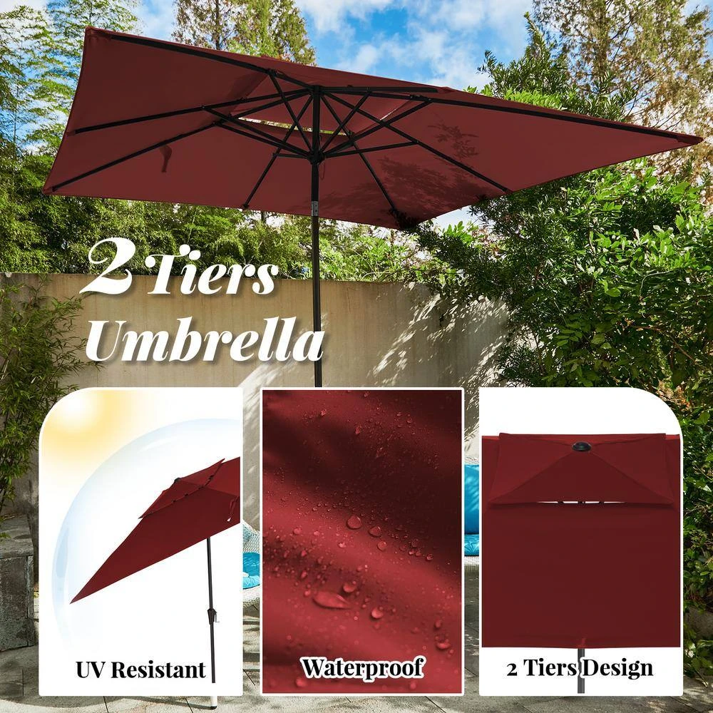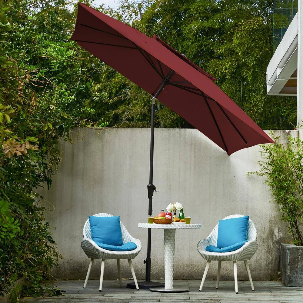 - Quality fabric – the canopy of tilt 2-tiers umbrella patio is made of 100% polyester fabric with fade resistant, can provide 98% UV protection top wind vent allows the air to flow better to keep it balanced