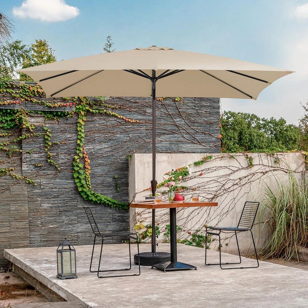 Enjoy the outdoors under the shade of this wonderful rectangular patio umbrella.Covering a wide area with its easy crank lift design,the umbrella blends perfectly with your patio furniture as you enjoy a meal outside with family and friends. The material of the umbrella face is water-proof polyester cloth, and the material of the main pole is metal, which ensures the product is strong and durable. It is both used in residential and private space of the rectangular shape.