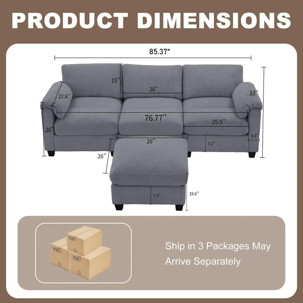 Choose a sofa that will provide ample seating for your friends and family. This sofa set is upholstered with high quality corduroy fabric, embodying the luxury and chic style of contemporary living room interiors, the thicker upholstered seat and padded armrest provide you with plenty of support and ultimate comfort, allowing you to sit for a long time without getting tired, works great in the office, bedroom, guest room or living room. If you’re interested, feel free to purchase and try it out.