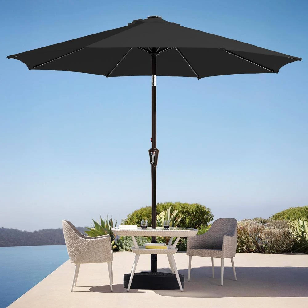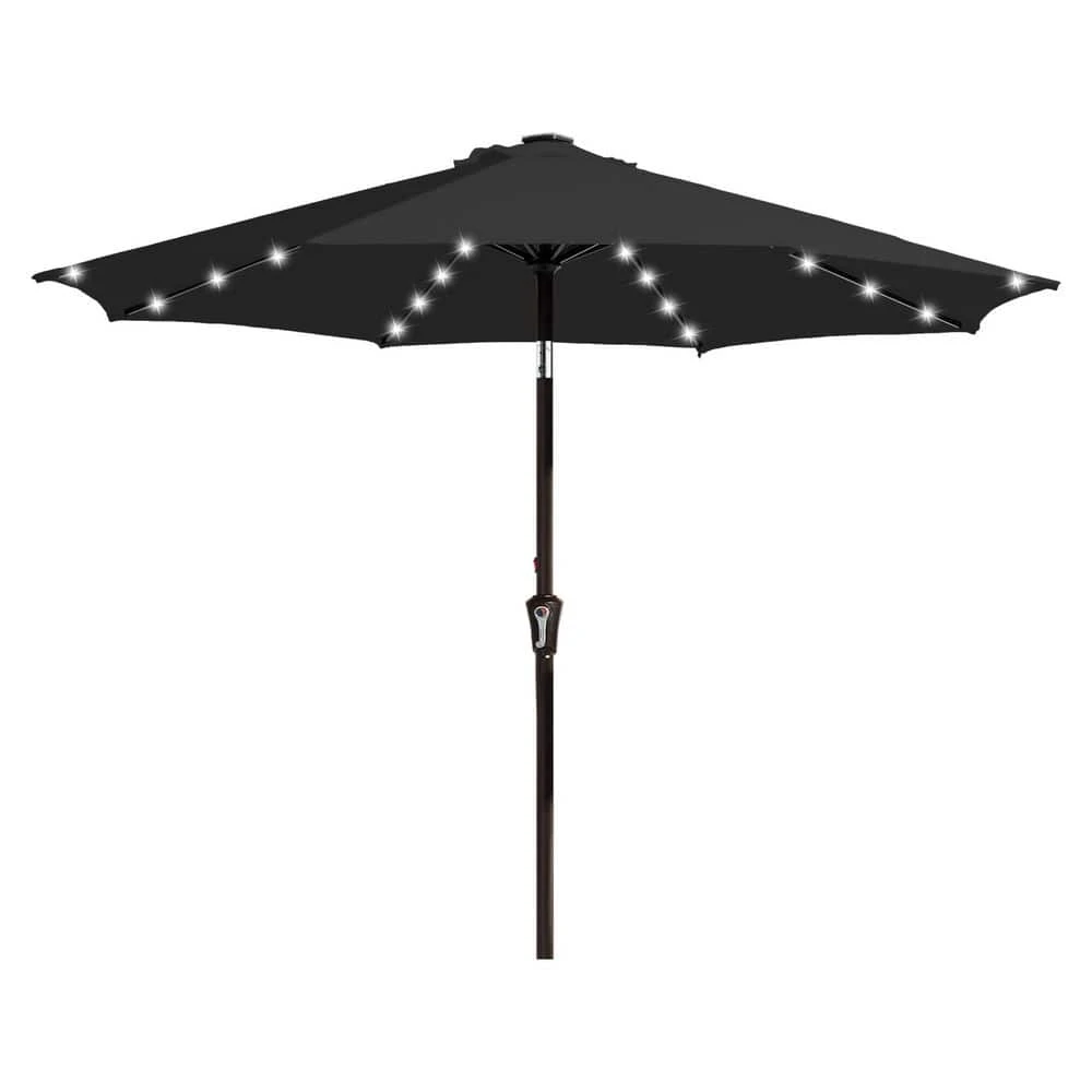 Enhance your outdoor living experience with the versatile and stylish Market Tilt Patio Umbrella. The umbrella features energy-efficient LED lights built into the ribs of the canopy, powered by a solar panel on top. The solar panel charges during the day to provide ambient lighting in the evening, allowing you to enjoy your outdoor space longer. This umbrella is designed to provide ample shade and comfort, making it a perfect addition to any patio, garden, deck, or poolside area.