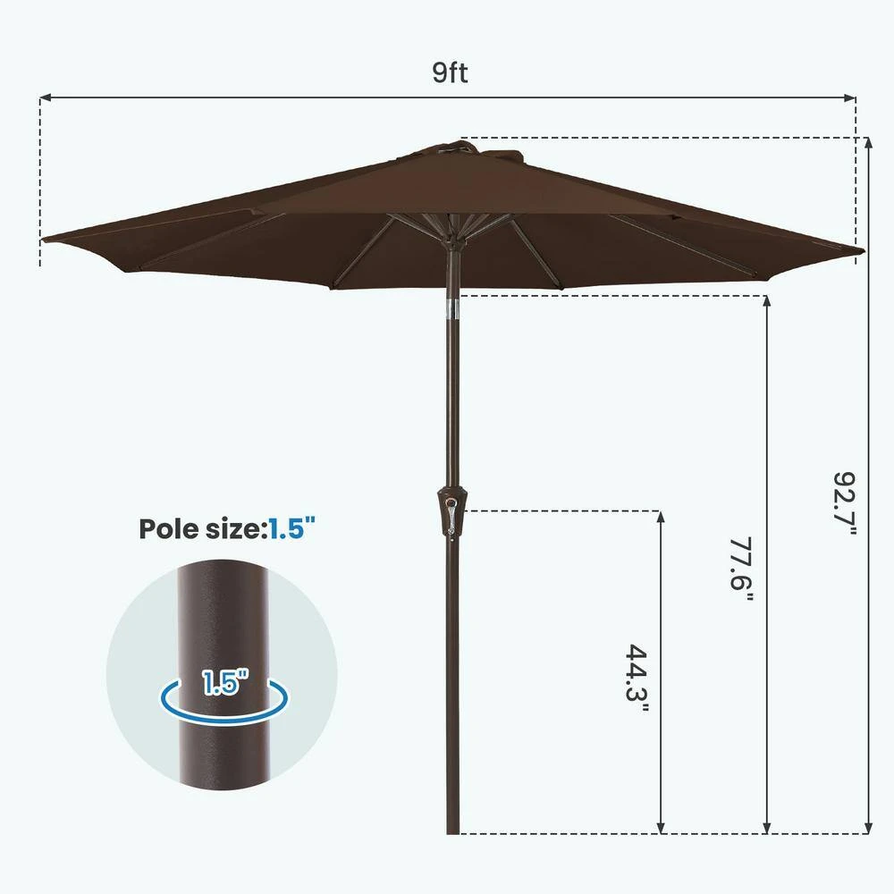 9 Ft. Outdoor Market Patio Umbrella With Hand Crank Lift In Brown