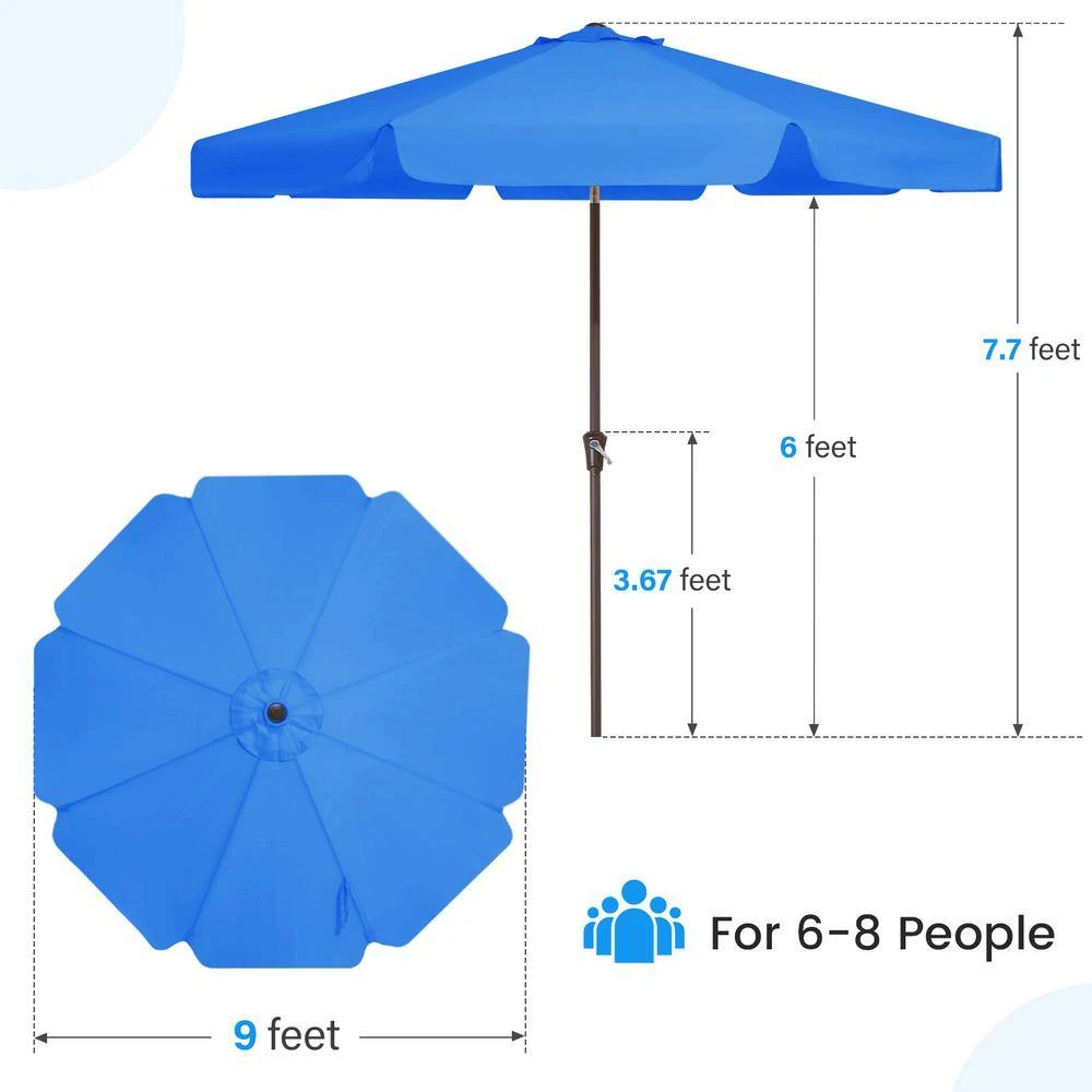 9 Ft. Steel Market Crank And Tilt Outdoor Patio Umbrella In Blue