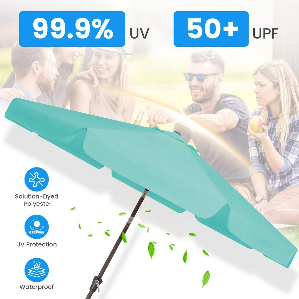 9 Ft. Steel Market Crank And Tilt Outdoor Patio Umbrella In Peacock Blue