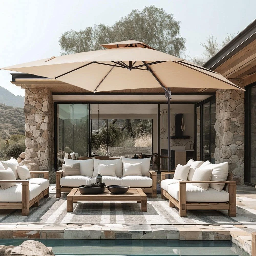 9 Ft. X 9 Ft. Aluminum Square Cantilever Patio Umbrella With Weighted Base In Beige