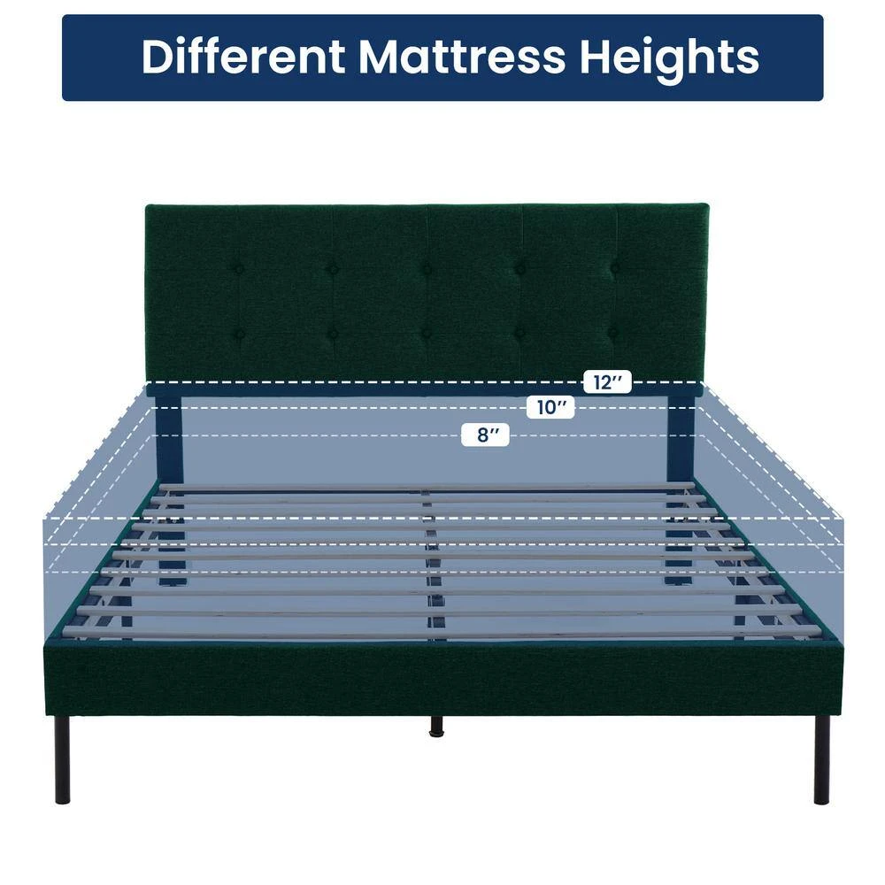 Alex Green Twin Upholstered Platform Bed Frame With Headboard