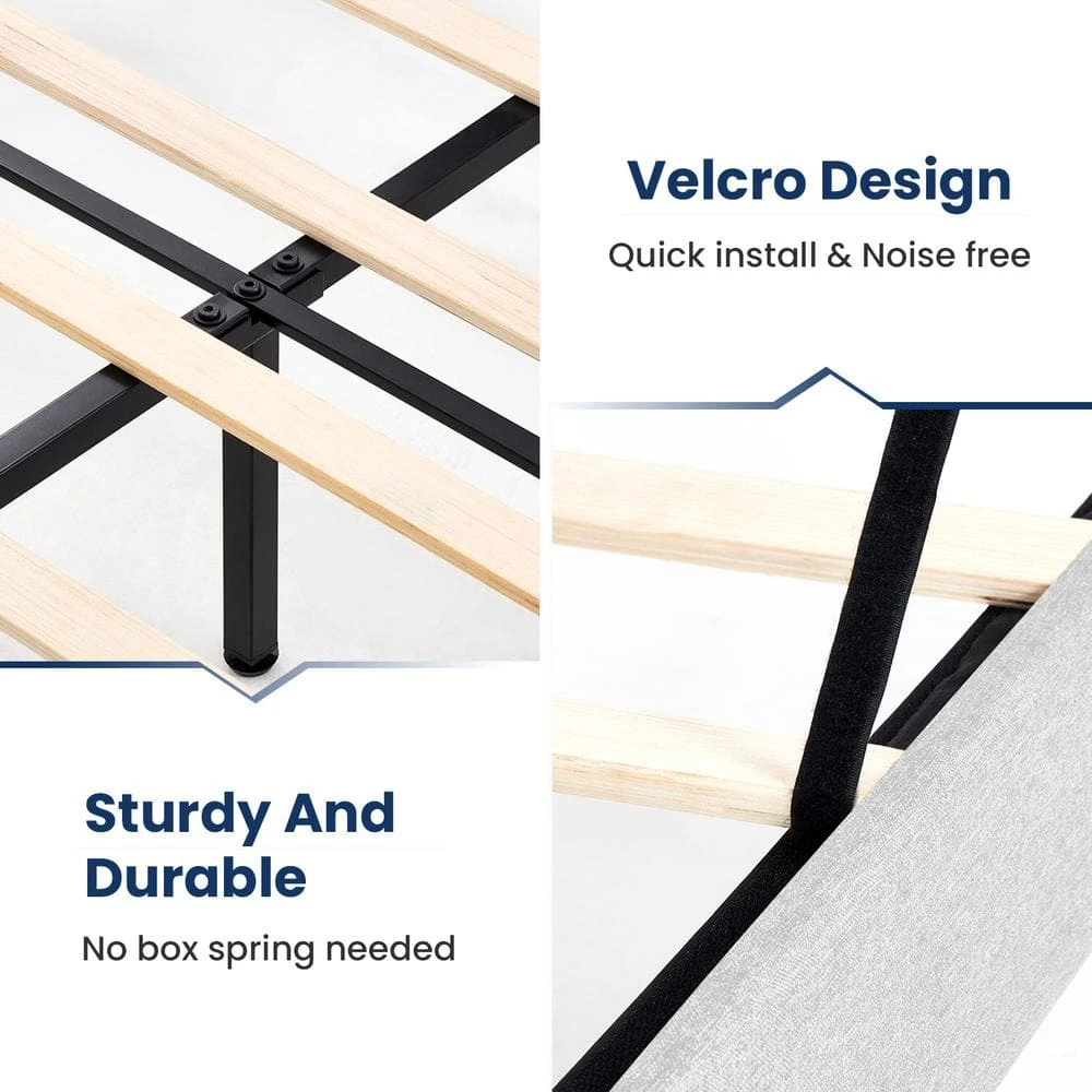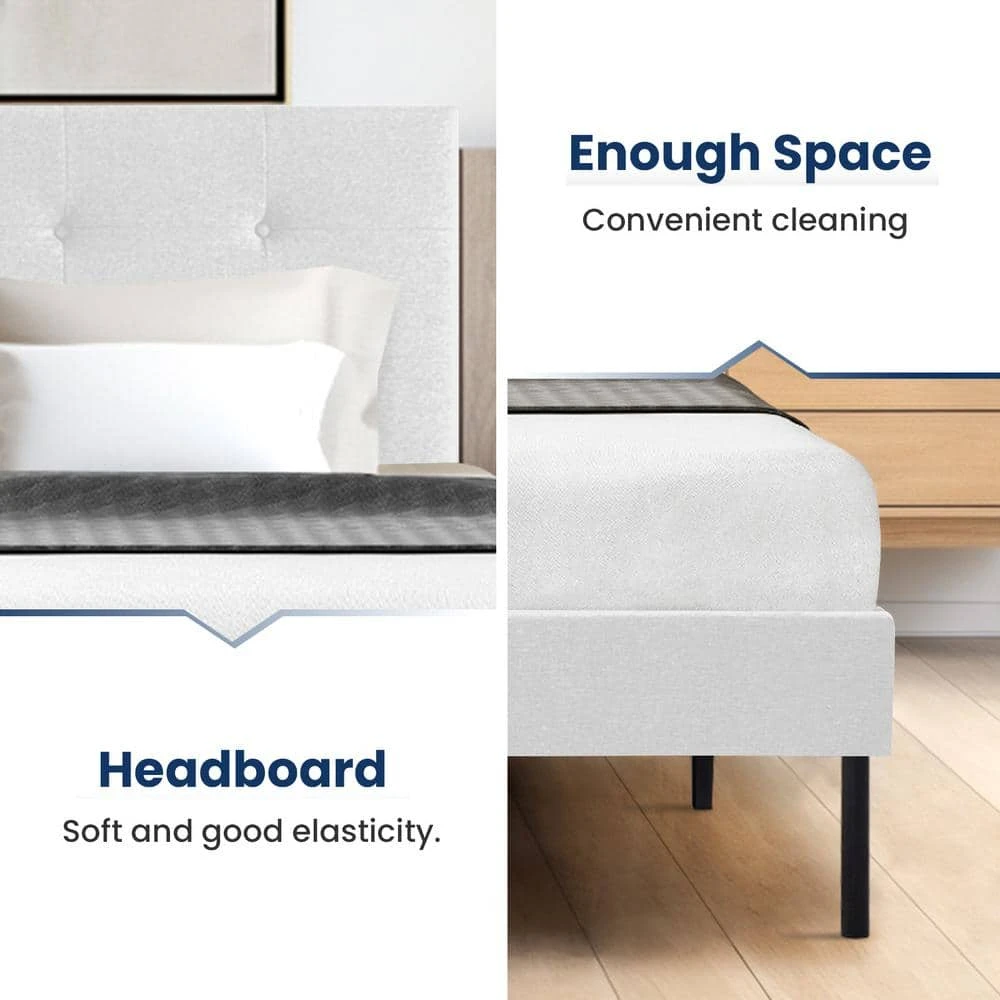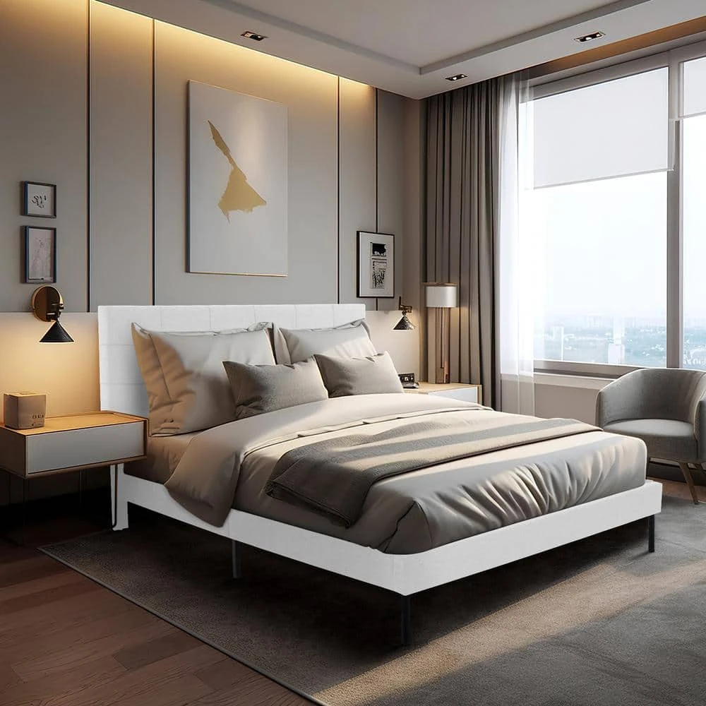 Alex White Full Upholstered Platform Bed Frame With Headboard