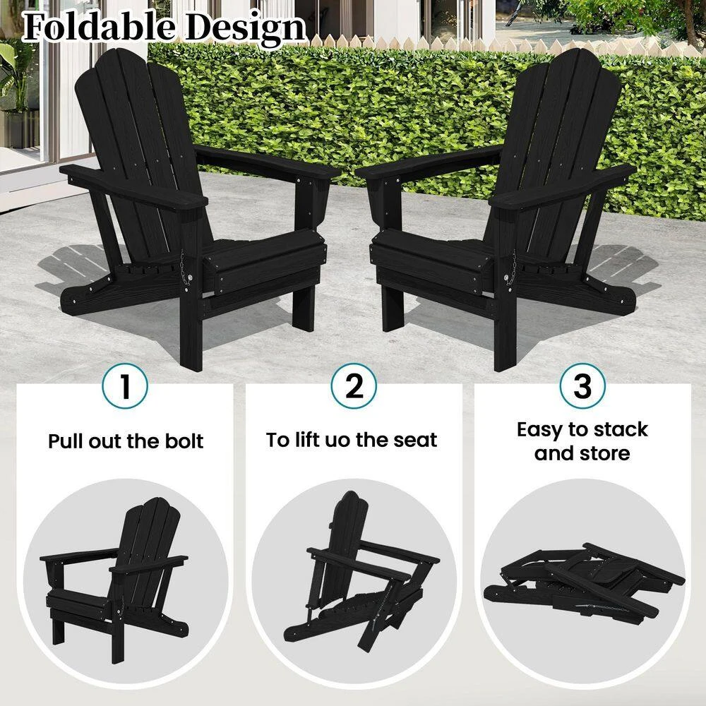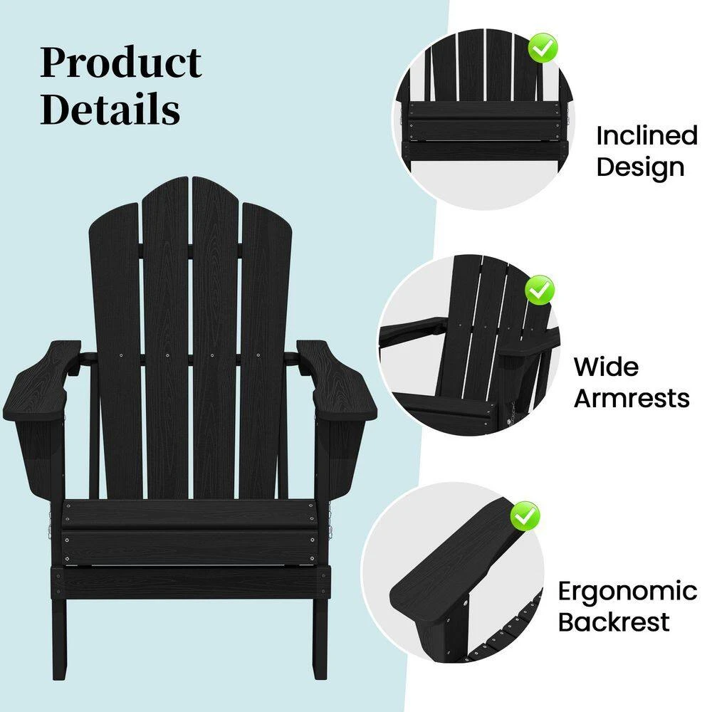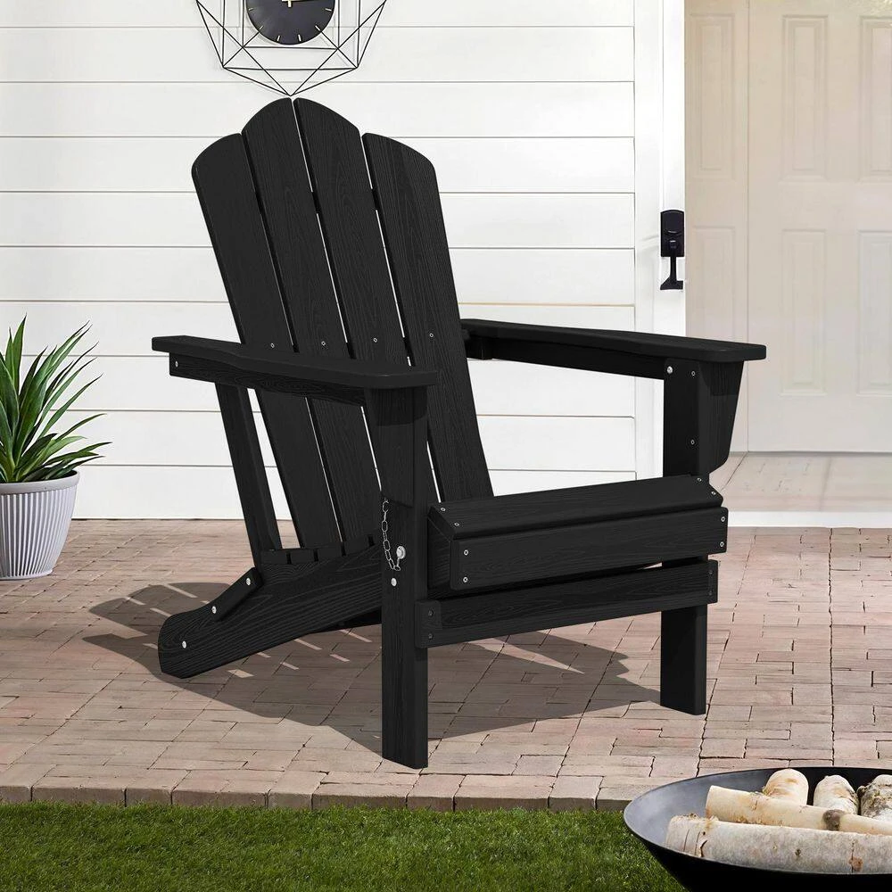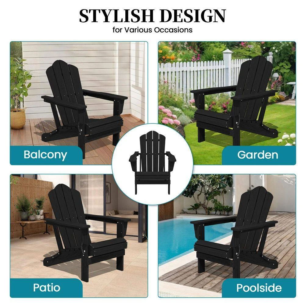 Black Folding HDPE Outdoor Patio Plastic Adirondack Chair With Ergonomic Design (1-Pack)