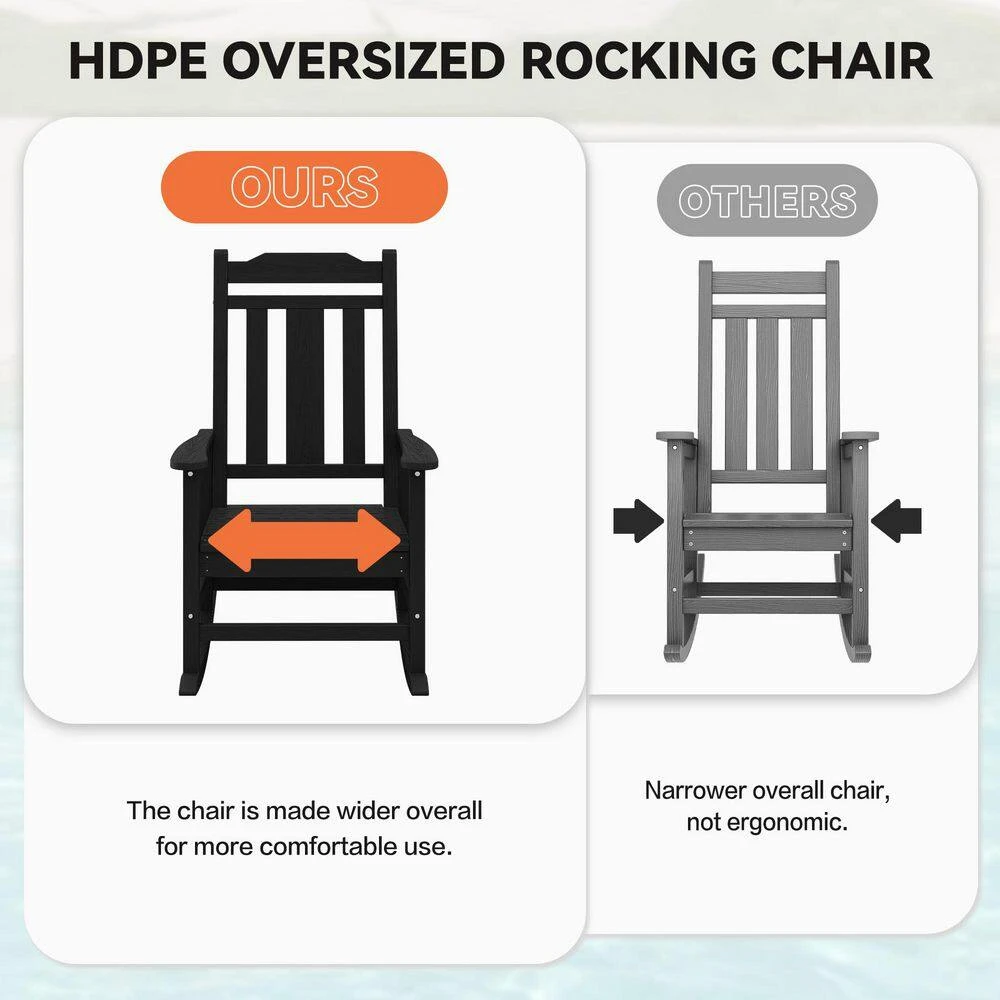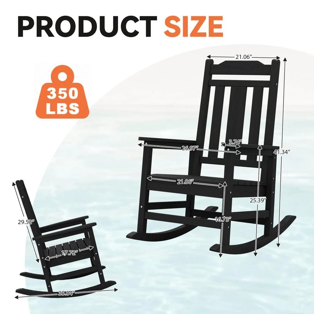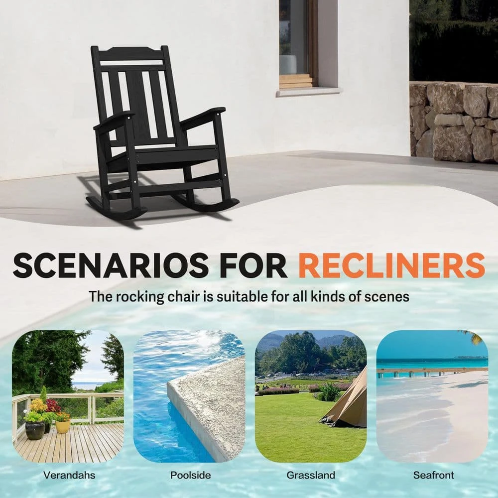 Black HDPE Plastic Adirondack Chair Outdoor Rocking Chair For Patio And Garden (1-Pack)