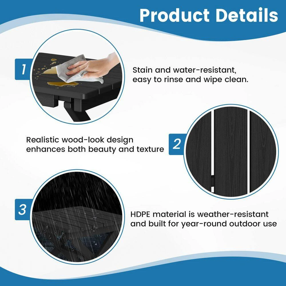 - Durable HDPE construction: made from high-density polyethylene (HDPE), this table is resistant to weather elements, ensuring longevity and durability for outdoor use