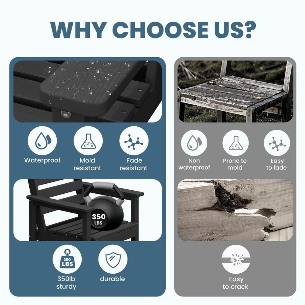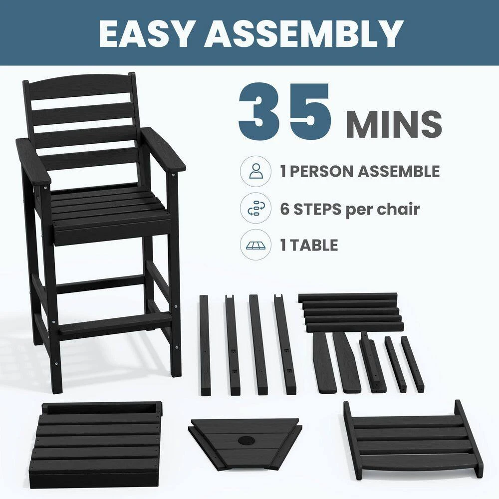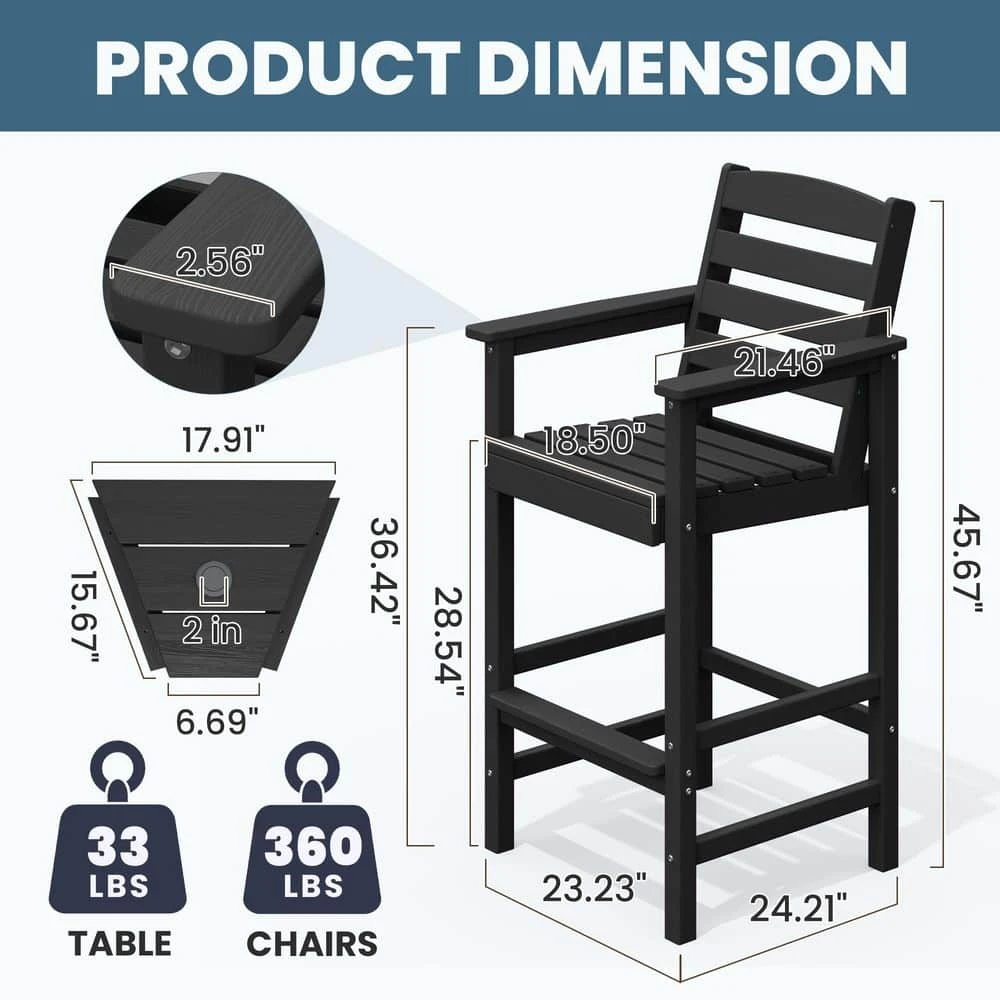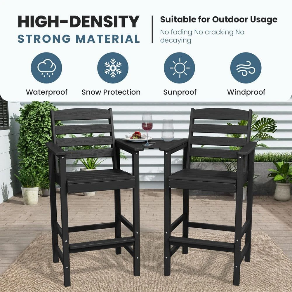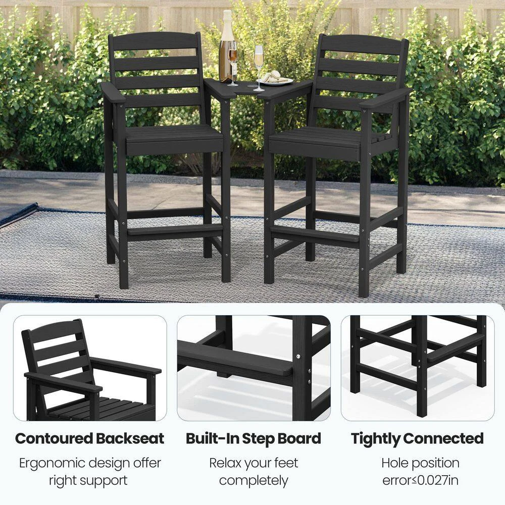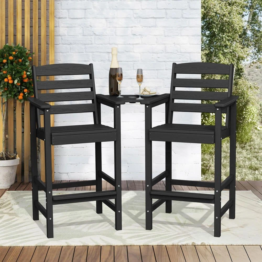 Black Modern HDPE Plastic Adirondack Chairs, Outdoor Bar Stools With Connecting Tray (Set Of 2)