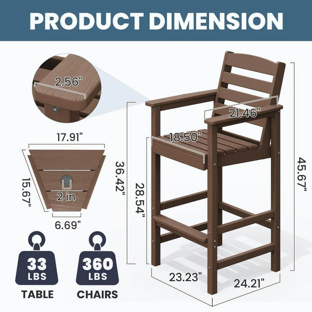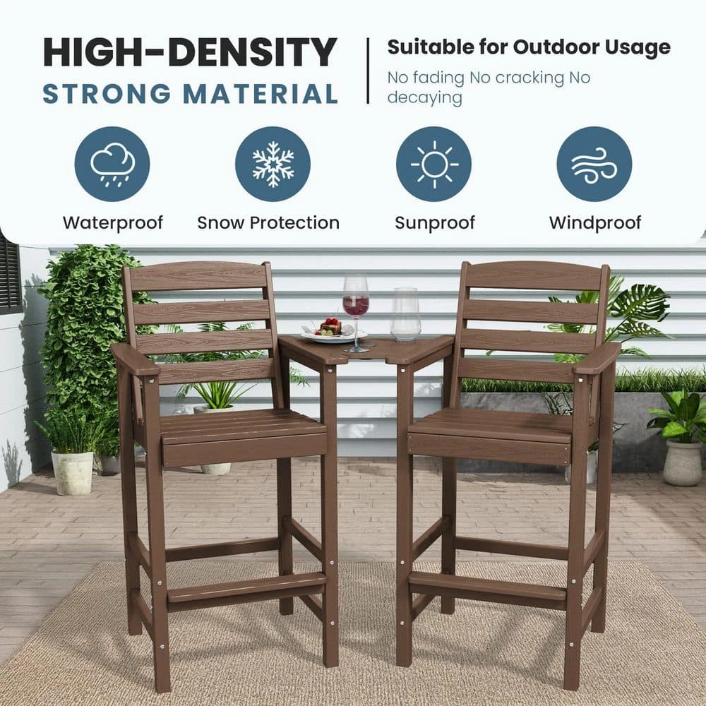 Brown Modern HDPE Plastic Adirondack Chairs, Outdoor Bar Stools With Connecting Tray (Set Of 2)