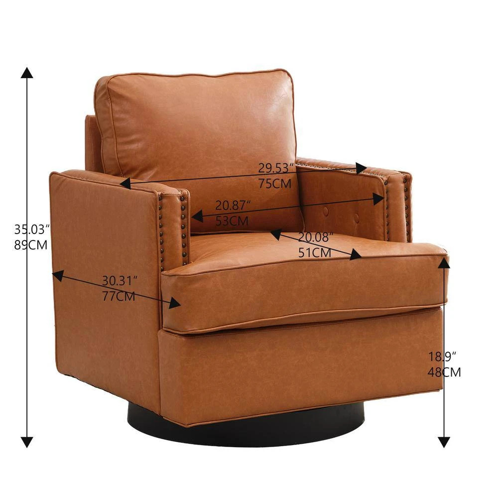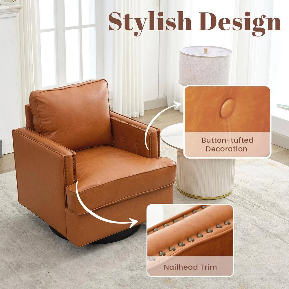Brown PU Leather 360° Swivel Nailhead Trim Button-tufted Accent Arm Chair With Cushion