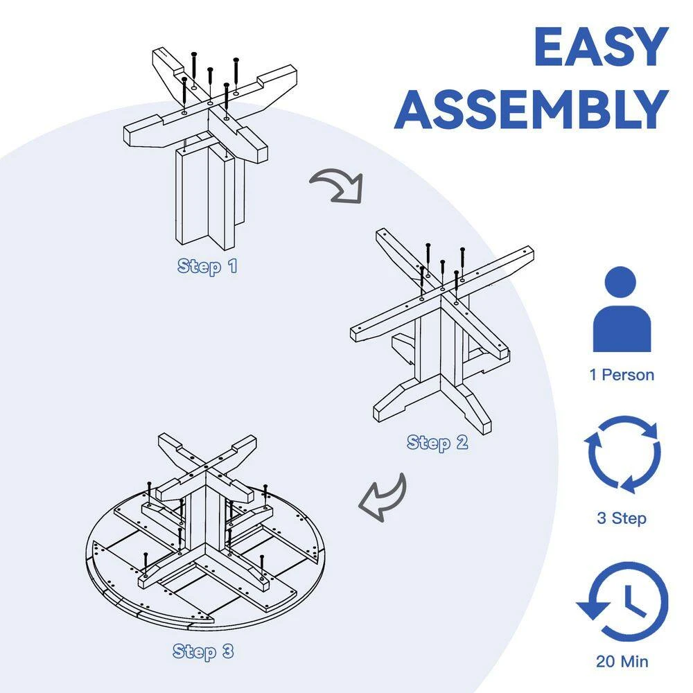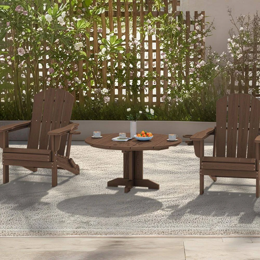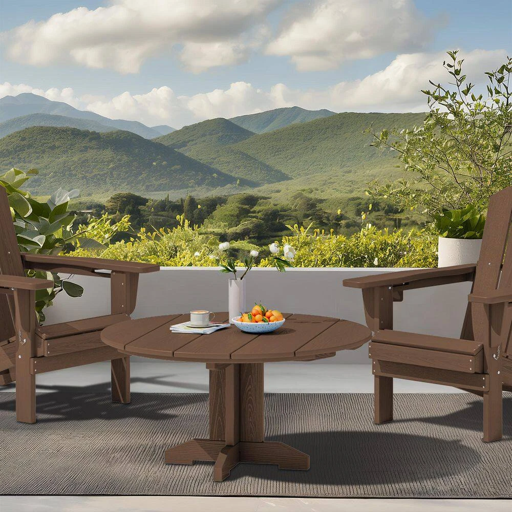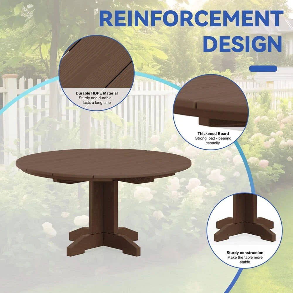Brown Round HDPE Conversation Coffee Table, Weather Resistant Outdoor Dining Table