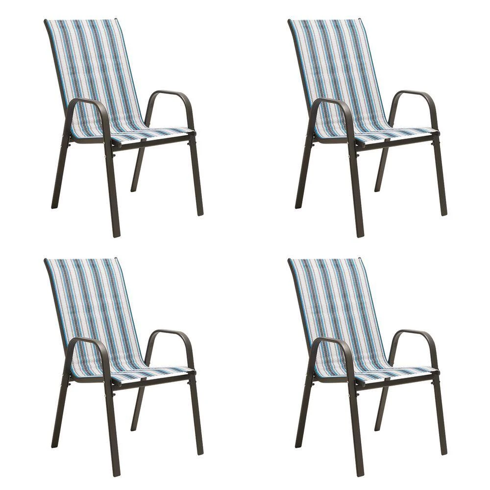 Charlotte Stackable Blue And White Outdoor Dining Chair Set Of 4