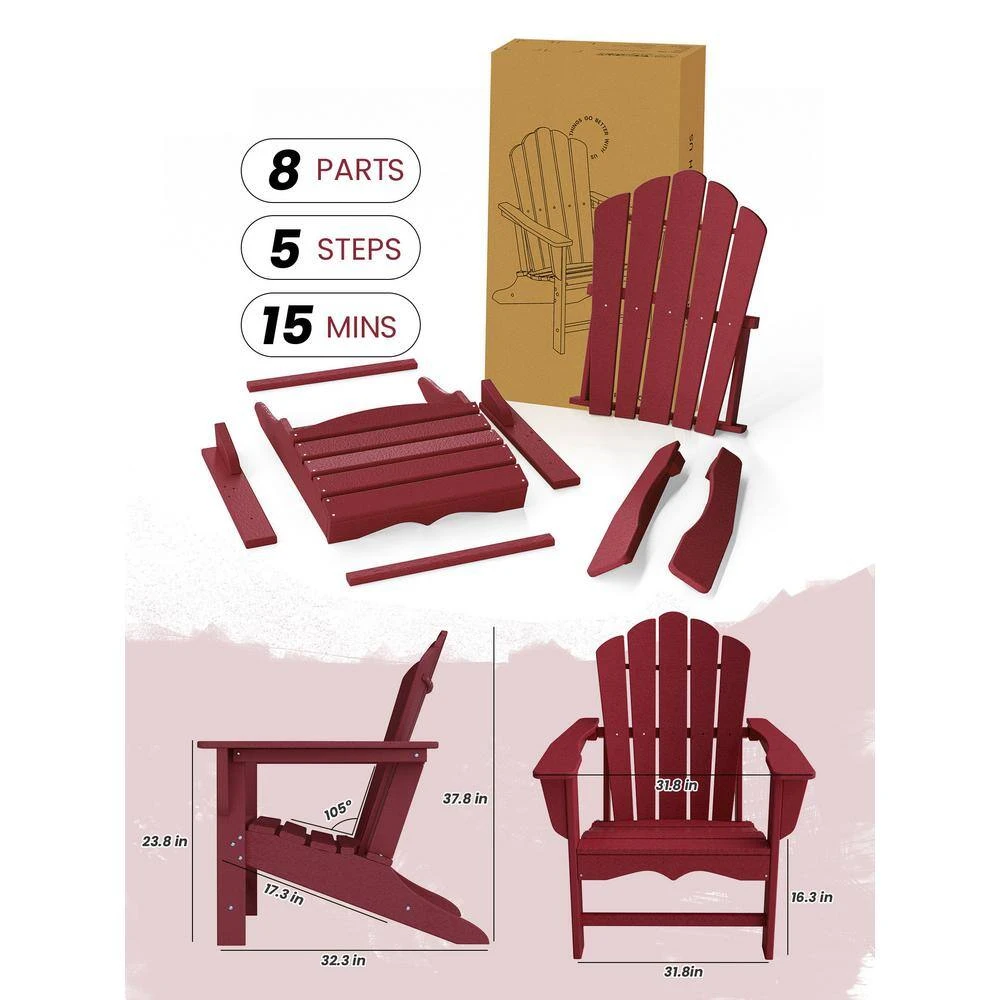 Classic All-Weather HDPE Plastic Adirondack Chair In Red