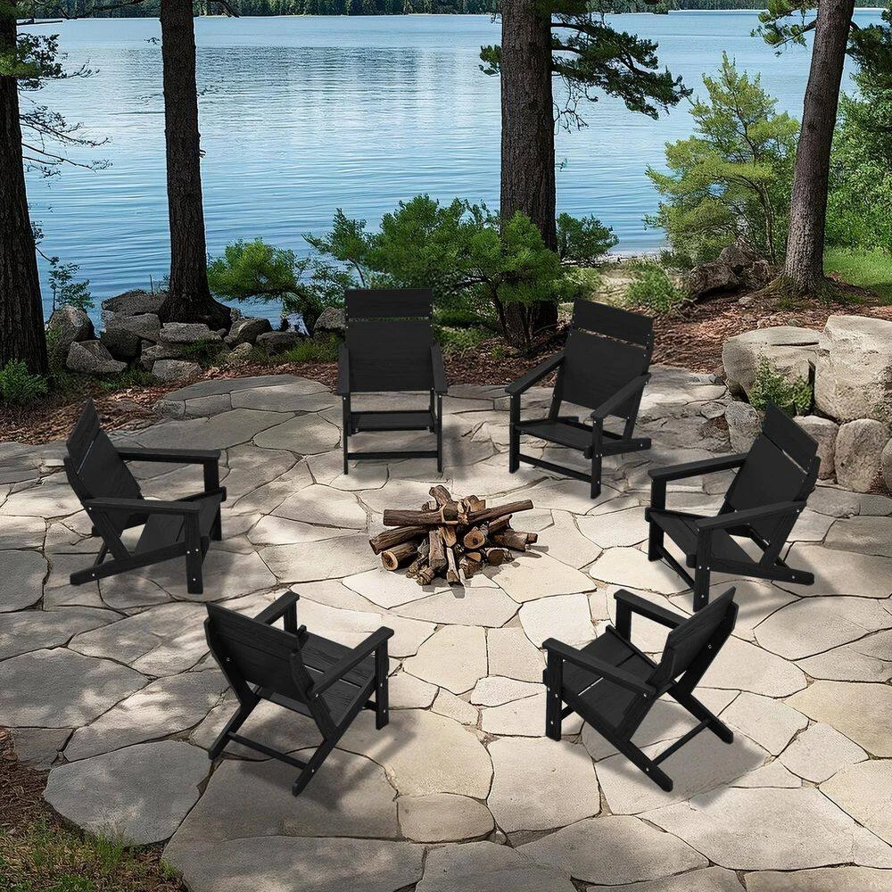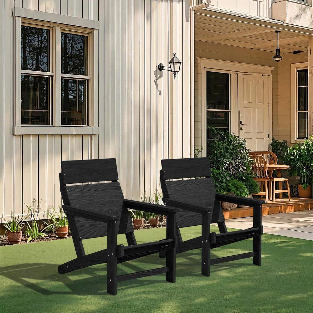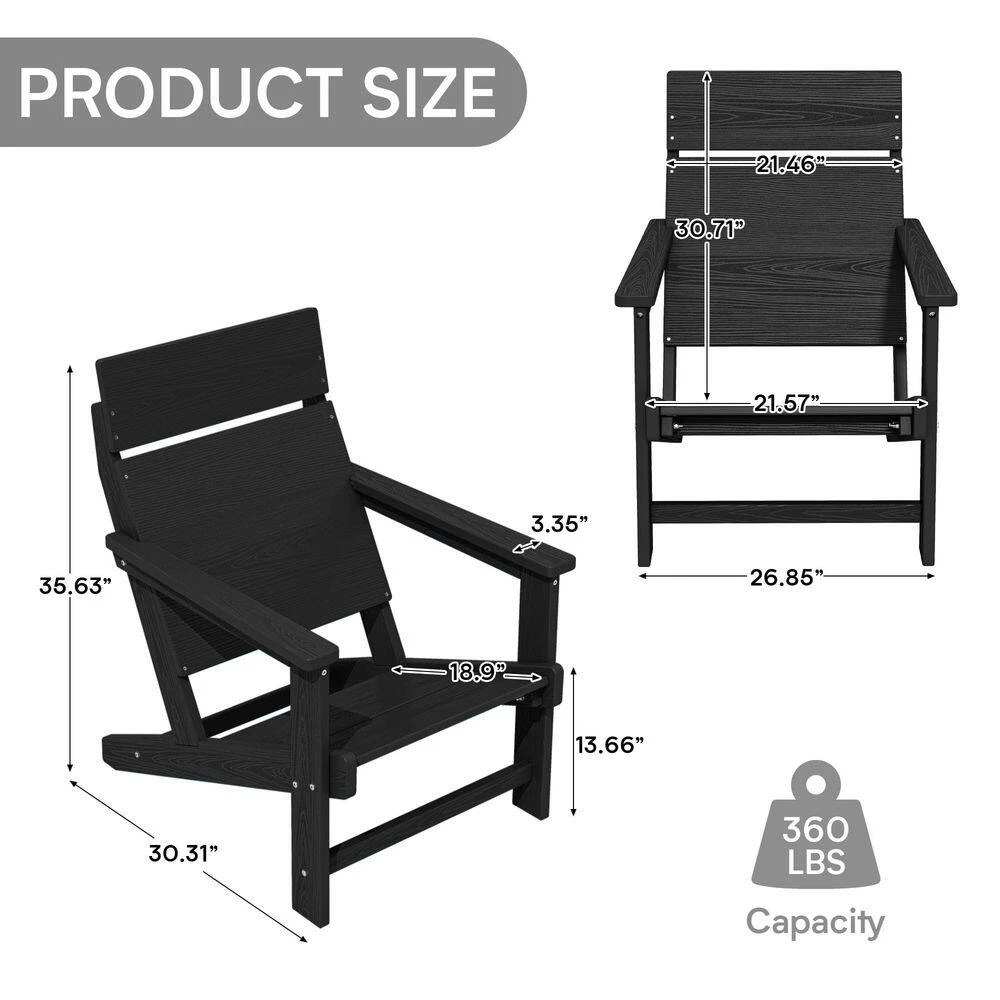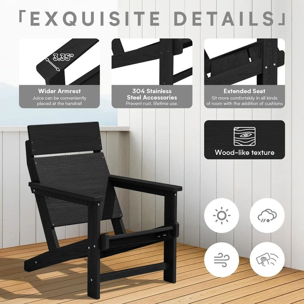 Classic Black Extended Seat Wider Armrest Plastic Adirondack Chair