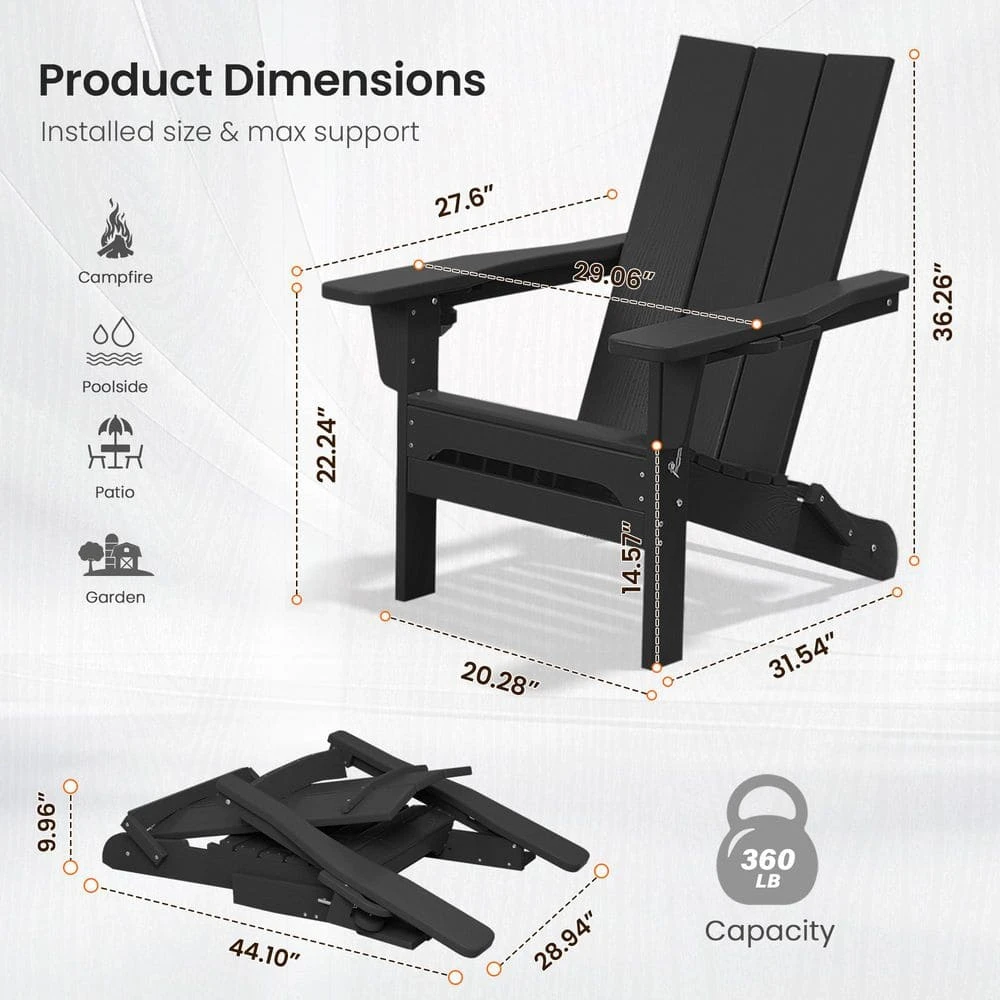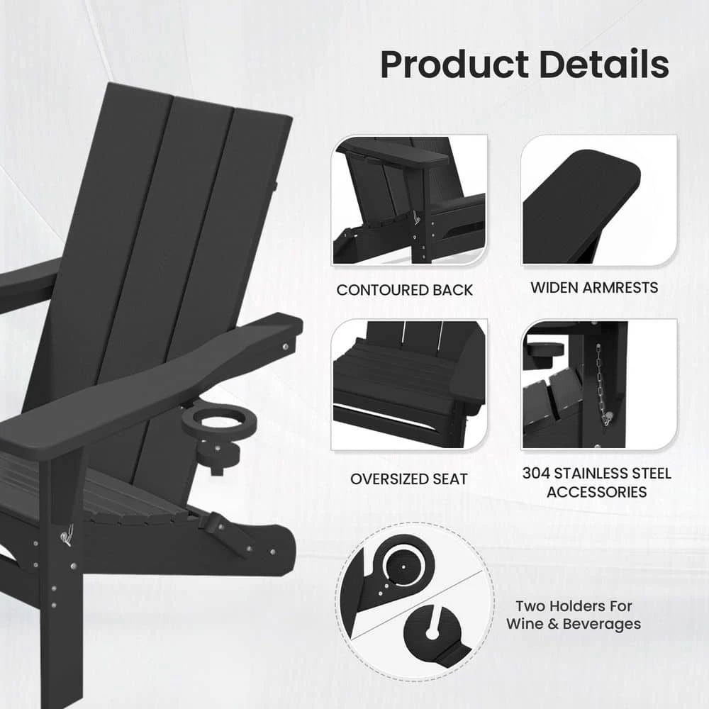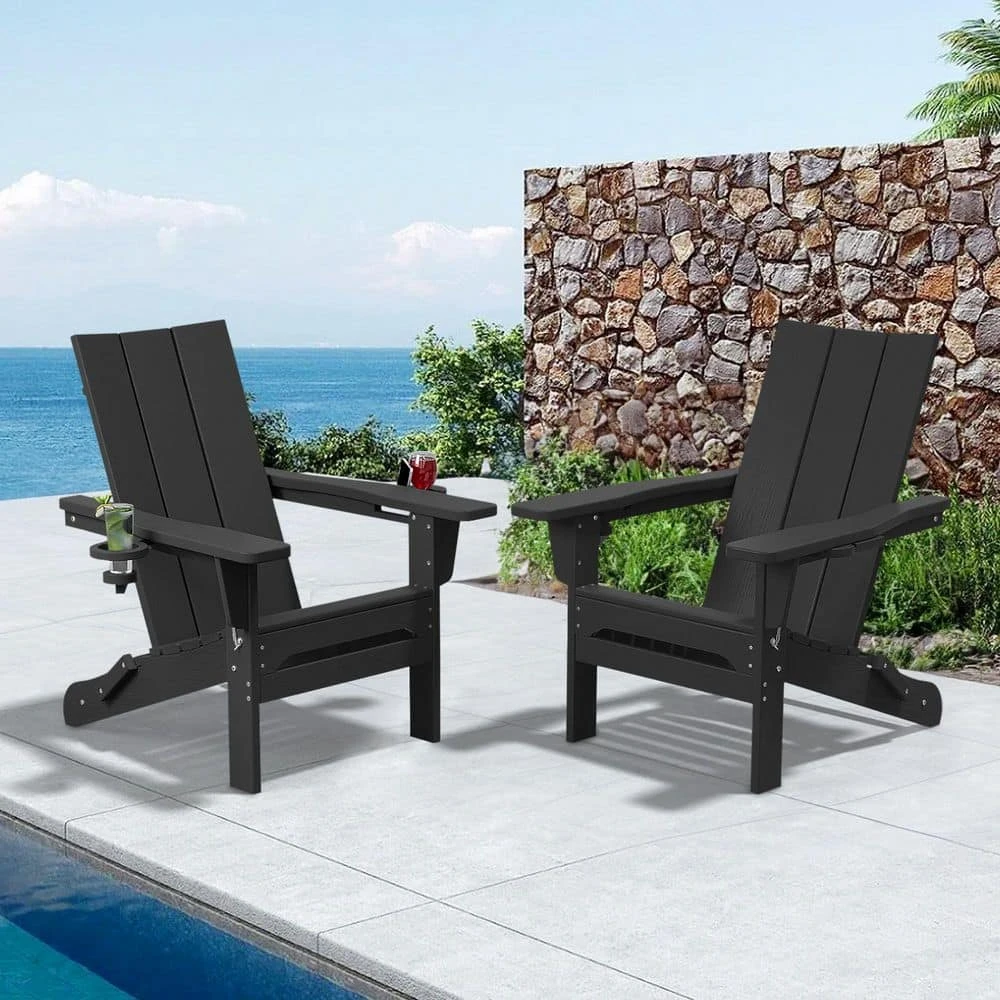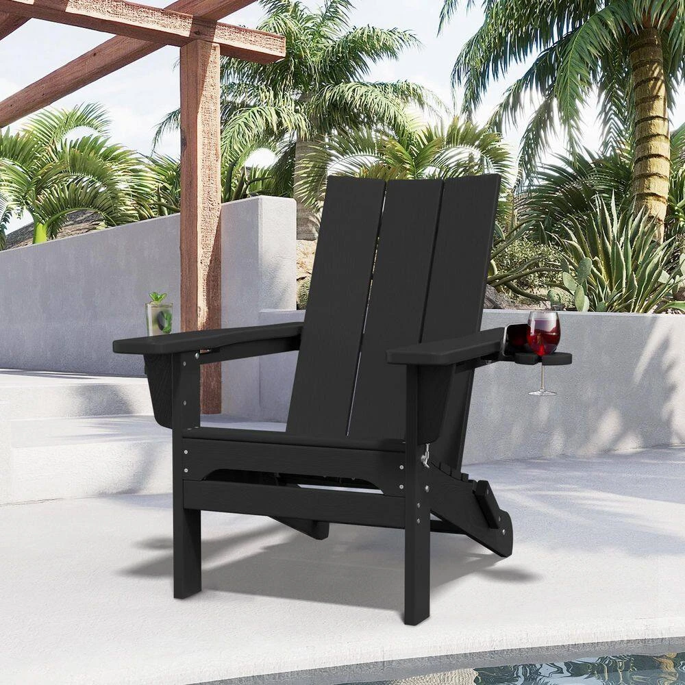 Classic Black Folding Plastic Adirondack Chair With Double Cup Holder