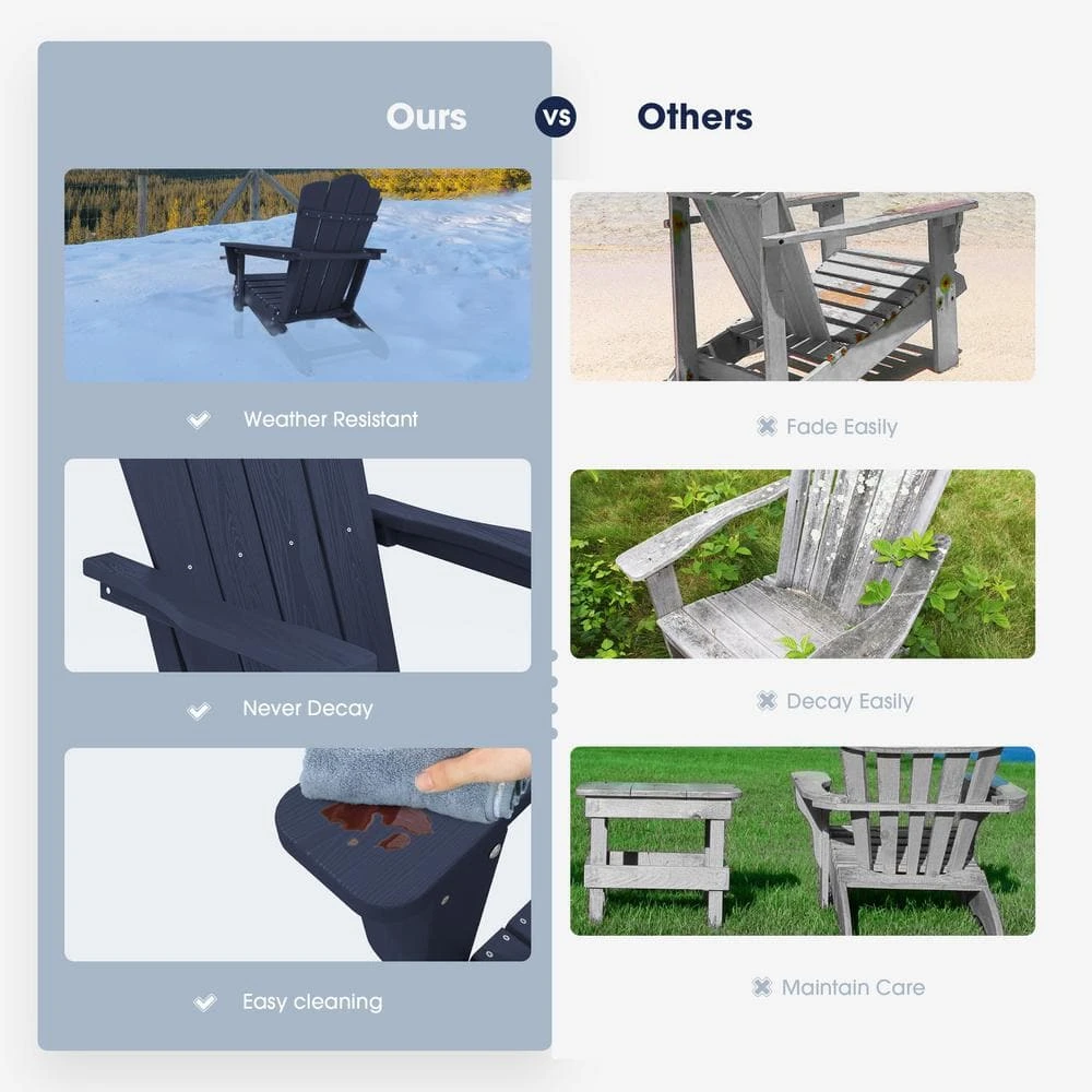 This folding Adirondack chair in a variety of colors adds a touch of bright color to your outdoor space. The retro surface and classic shape of the chair is the perfect choice for your decoration. The waterproof and folding functional attributes protect the product itself and last the use time limit. The curved seat conforms to ergonomics maximizes the comfort for the user. Sit back and soak up the Sun to enjoy outdoor with this amazing chair This stylish patio chair will become a staple in your backyard, patio, porch, lakeside lodges and mountain cabins. Please search the side table to match this adirondack chair by 321043535.