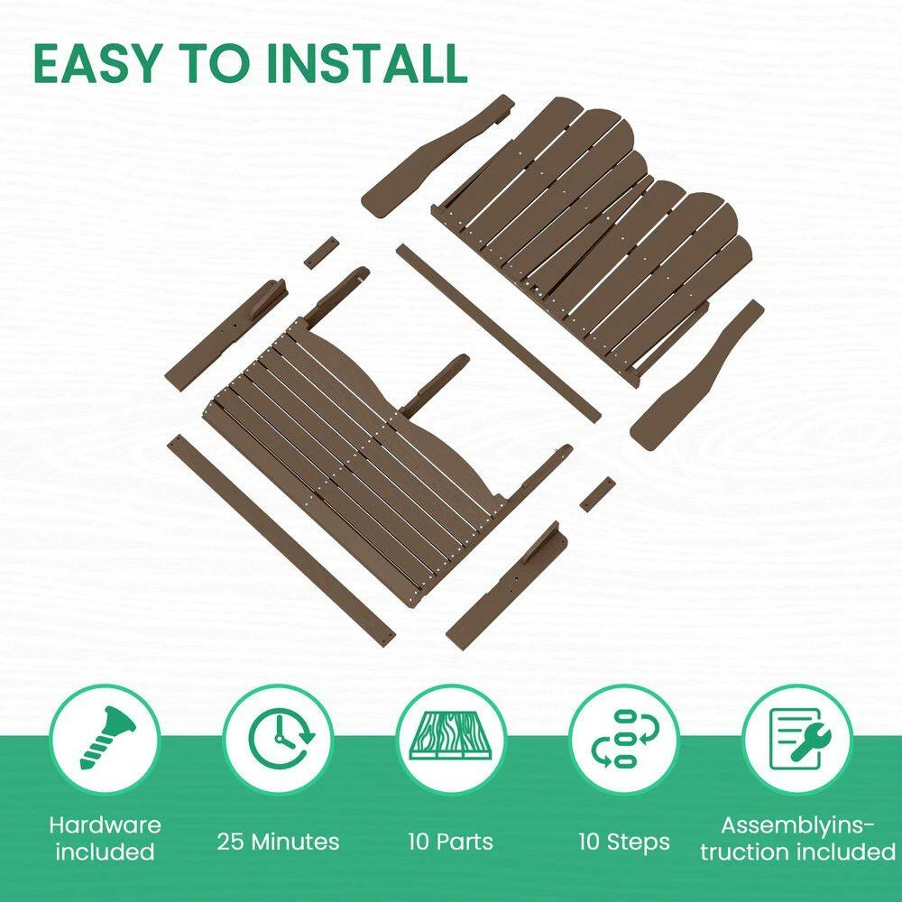 Transform your outdoor space with this comfortable and versatile loveseat. Designed for 2, this chair is crafted from durable HDPE material, making it perfect for outdoor relaxation while withstanding the elements. Its modern, elegant design enhances any patio, garden, or balcony, offering a cozy spot to unwind. Featuring a convenient foldable design, this loveseat is easy to store when not in use, saving space without sacrificing style. Available in 5-sleek finishes-Black, White, Gray, Navy, and Brown-this chair complements any decor style effortlessly. Whether you’re looking for a cozy retreat for reading or enjoying the fresh air, this foldable loveseat is your ultimate companion for relaxation and outdoor luxury.