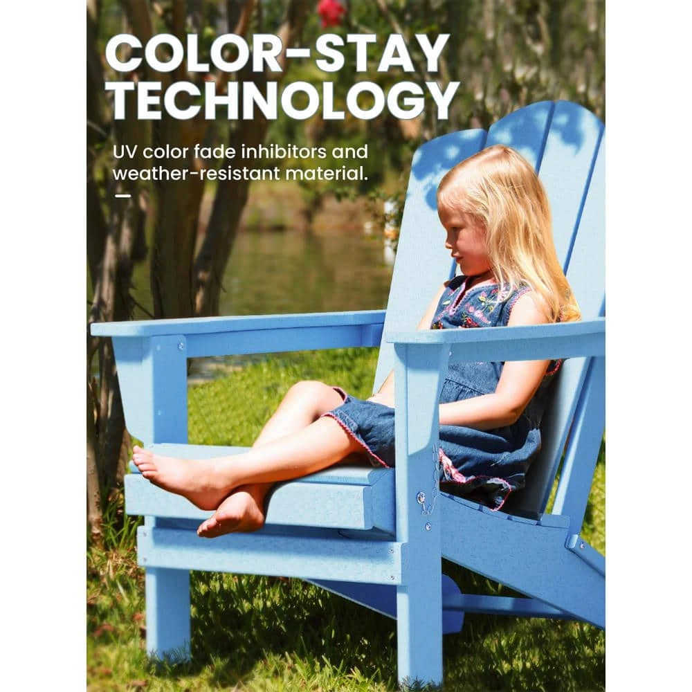 Classic Folding HDPE Plastic Adirondack Chair In Light Blue