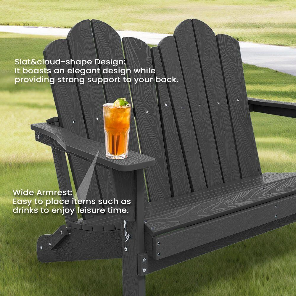 Transform your outdoor space with this comfortable and versatile loveseat. Designed for two, this chair is crafted from durable HDPE material, making it perfect for outdoor relaxation while withstanding the elements. Its modern, elegant design enhances any patio, garden, or balcony, offering a cozy spot to unwind. Featuring a convenient foldable design, this loveseat is easy to store when not in use, saving space without sacrificing style. Available in five sleek finishes-Black, White, Gray, Navy, and Brown-this chair complements any decor style effortlessly. Whether you’re looking for a cozy retreat for reading or enjoying the fresh air, this foldable loveseat is your ultimate companion for relaxation and outdoor luxury.