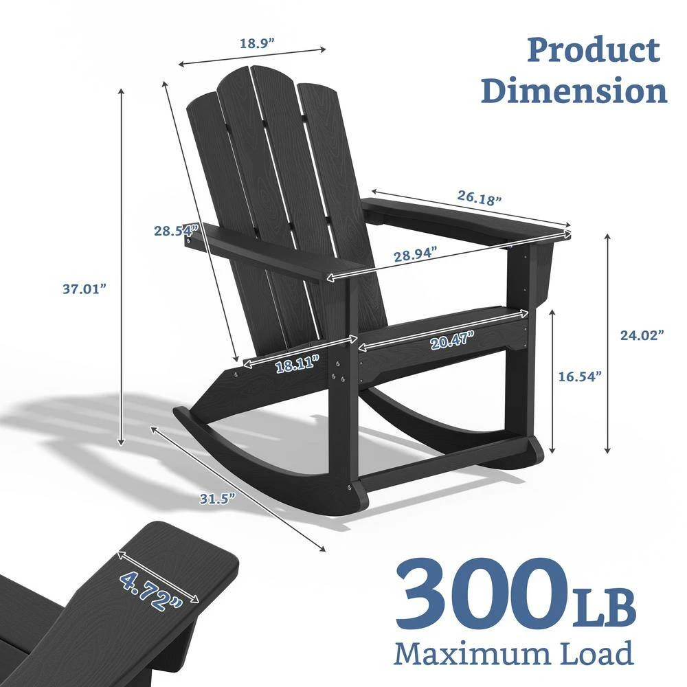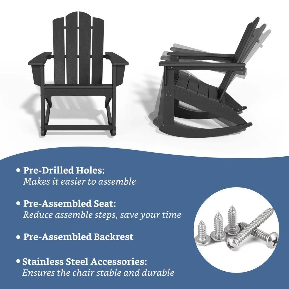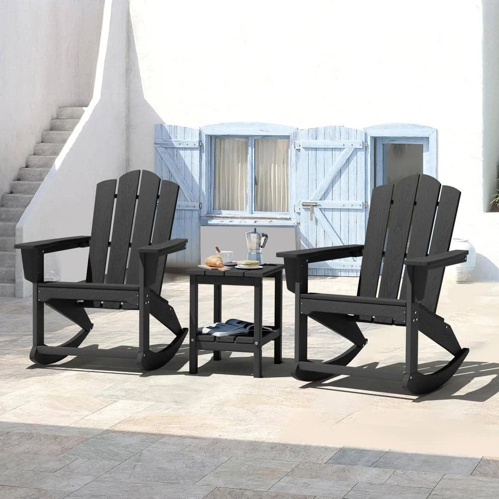 Classic HDPE Plastic Outdoor Rocking Chair In Black