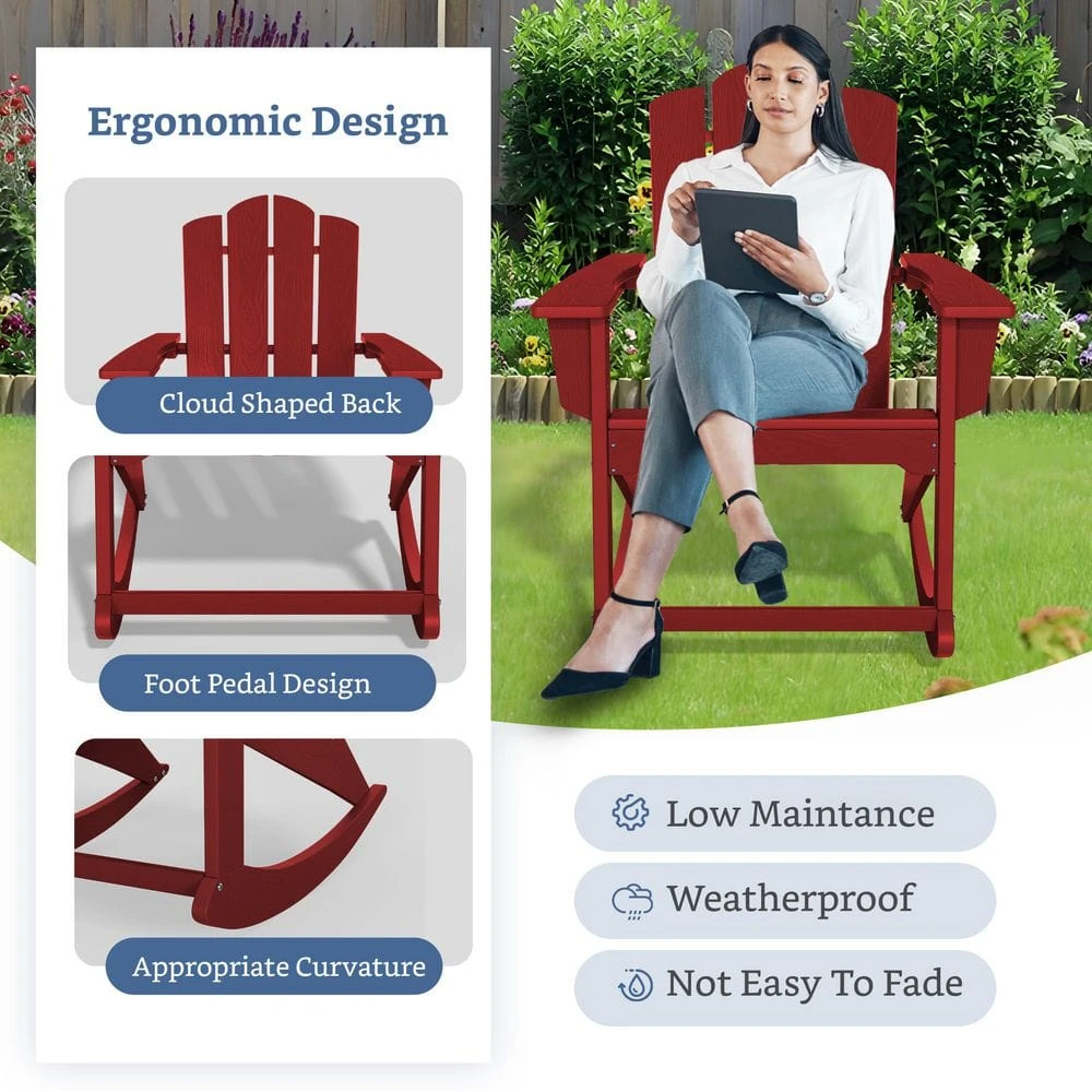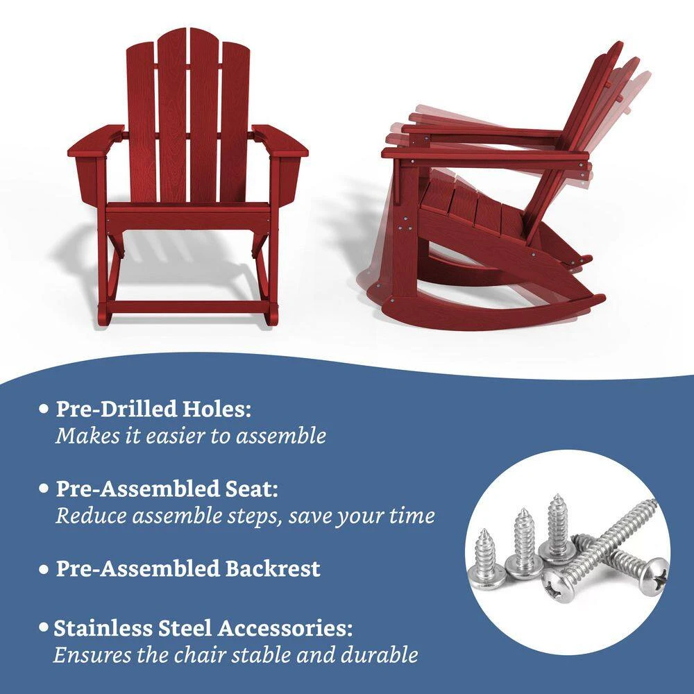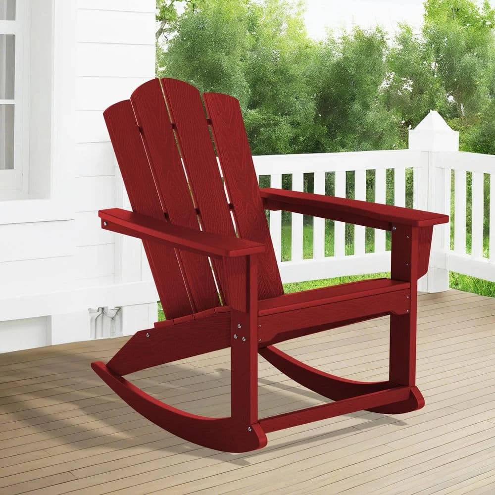 Classic HDPE Plastic Outdoor Rocking Chair In Dark Red
