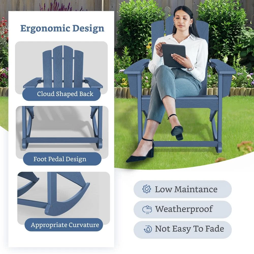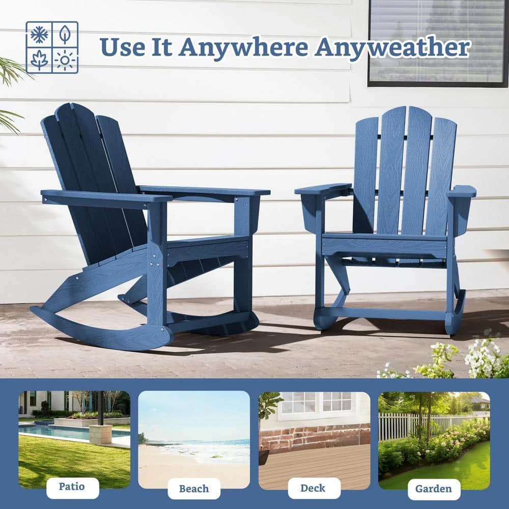 Classic HDPE Plastic Outdoor Rocking Chair In Navy