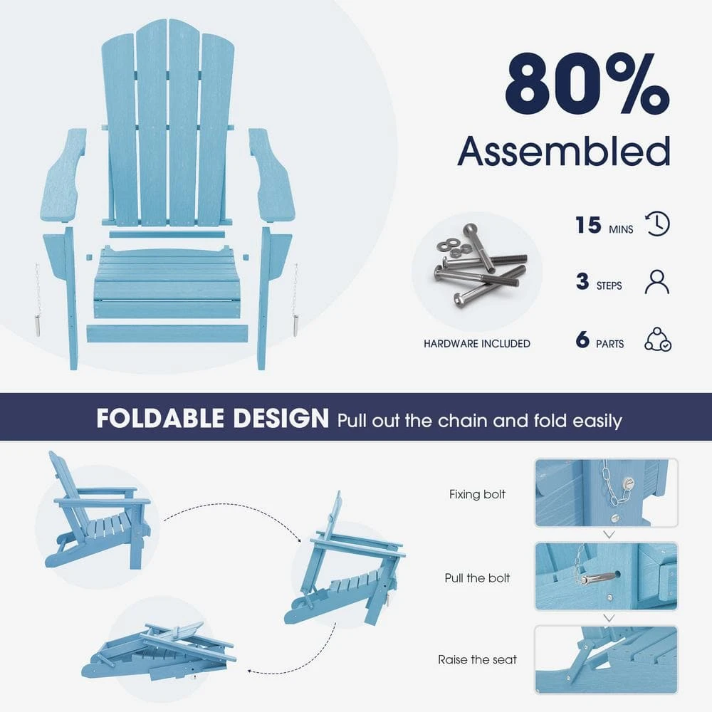 - Weatherproof And fade-proof: adorandak chair will never fade, splinter, crack, chip, peel or rot when exposed to the elements lifetime money back guarantee if you are not 100% satisfied