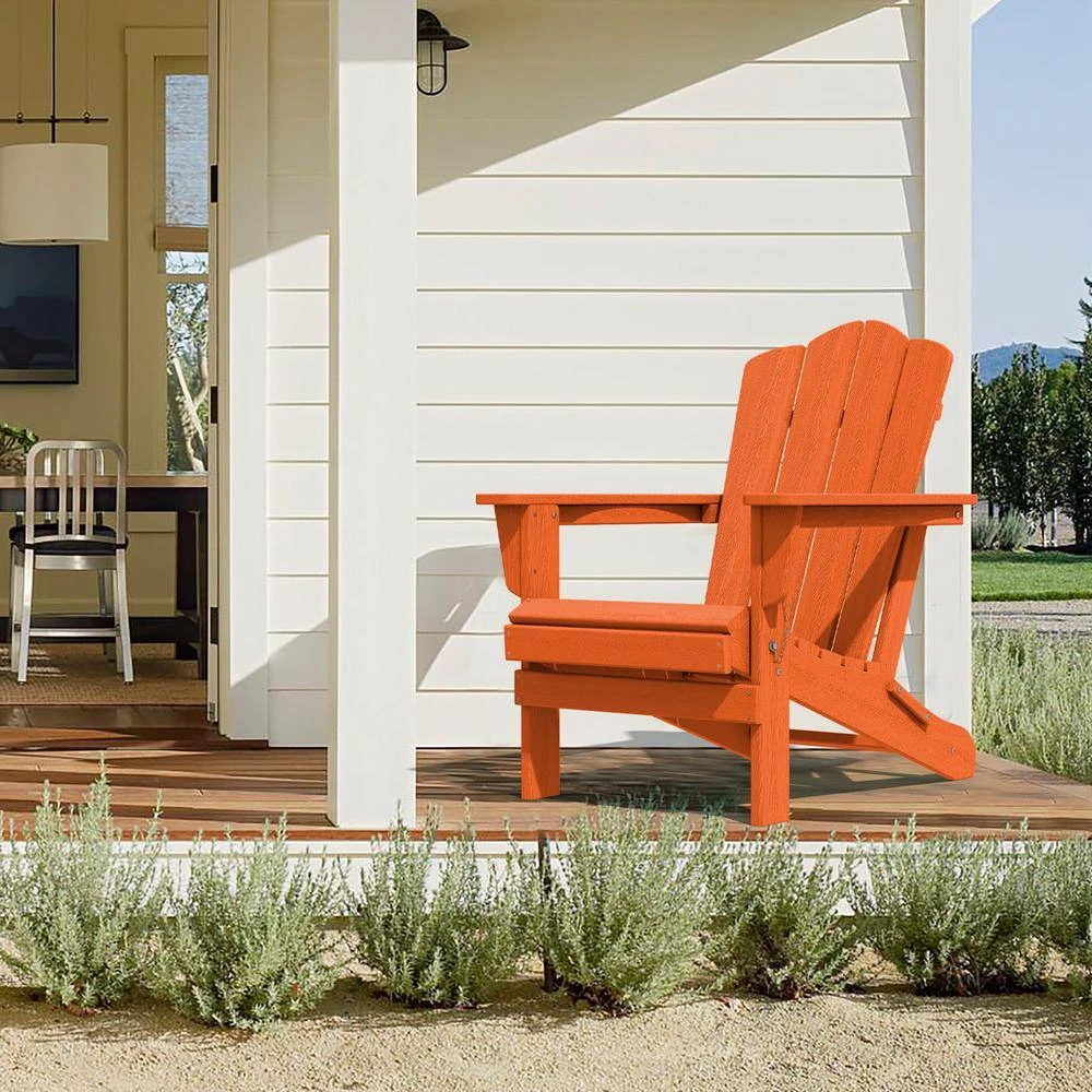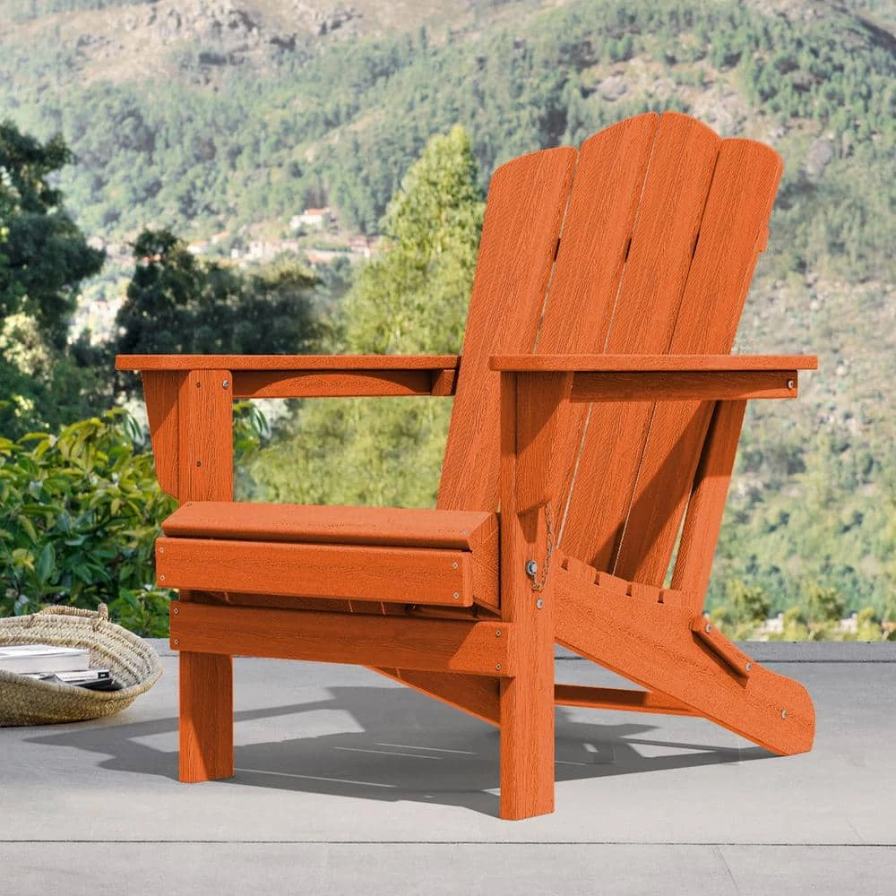Classic Orange HDPE Folding Plastic Adirondack Chair (1-Pack)