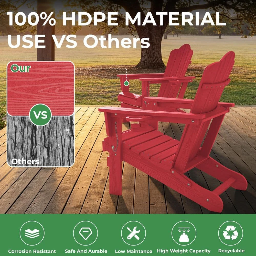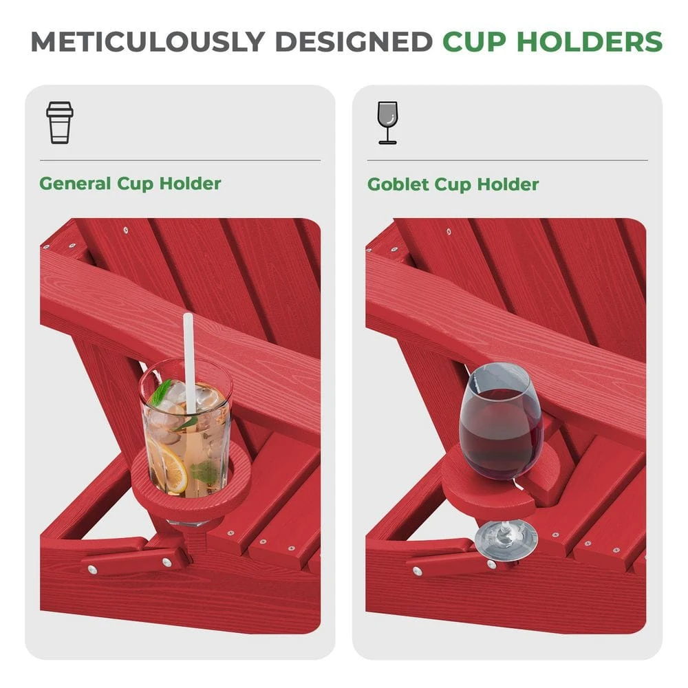 Classic Outdoor HDPE Folding Plastic Adirondack Chair With 2 Cup Holders In Bright Red (Set Of 1)