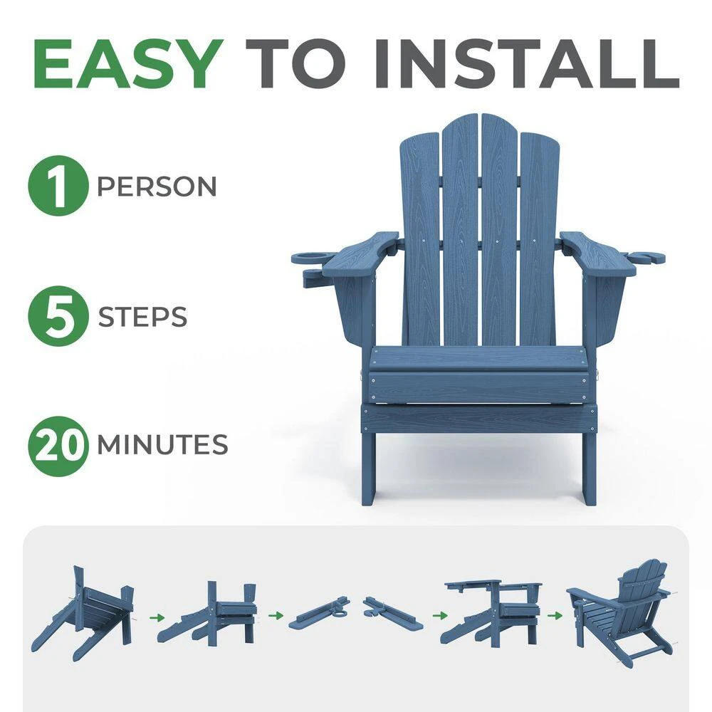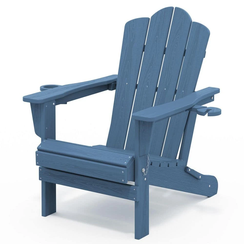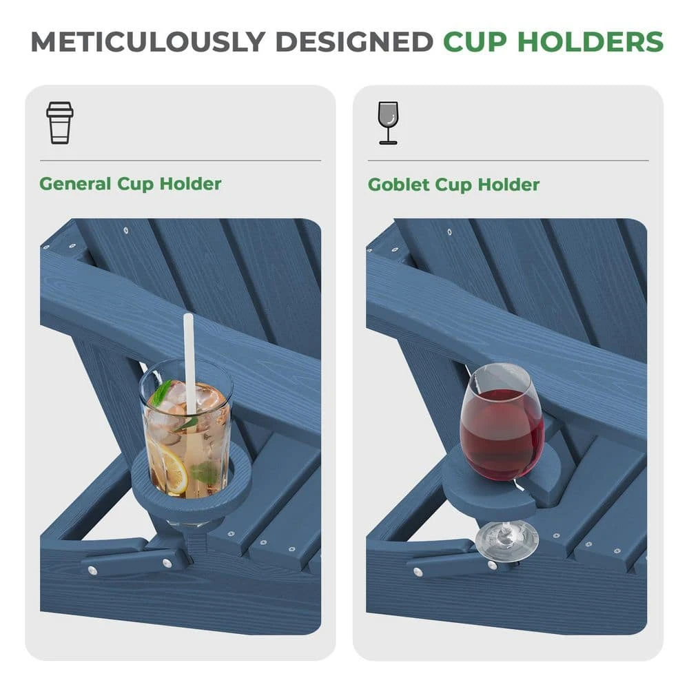Classic Outdoor HDPE Folding Plastic Adirondack Chair With 2 Cup Holders In Navy (Set Of 1)