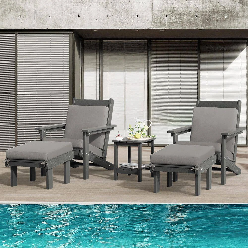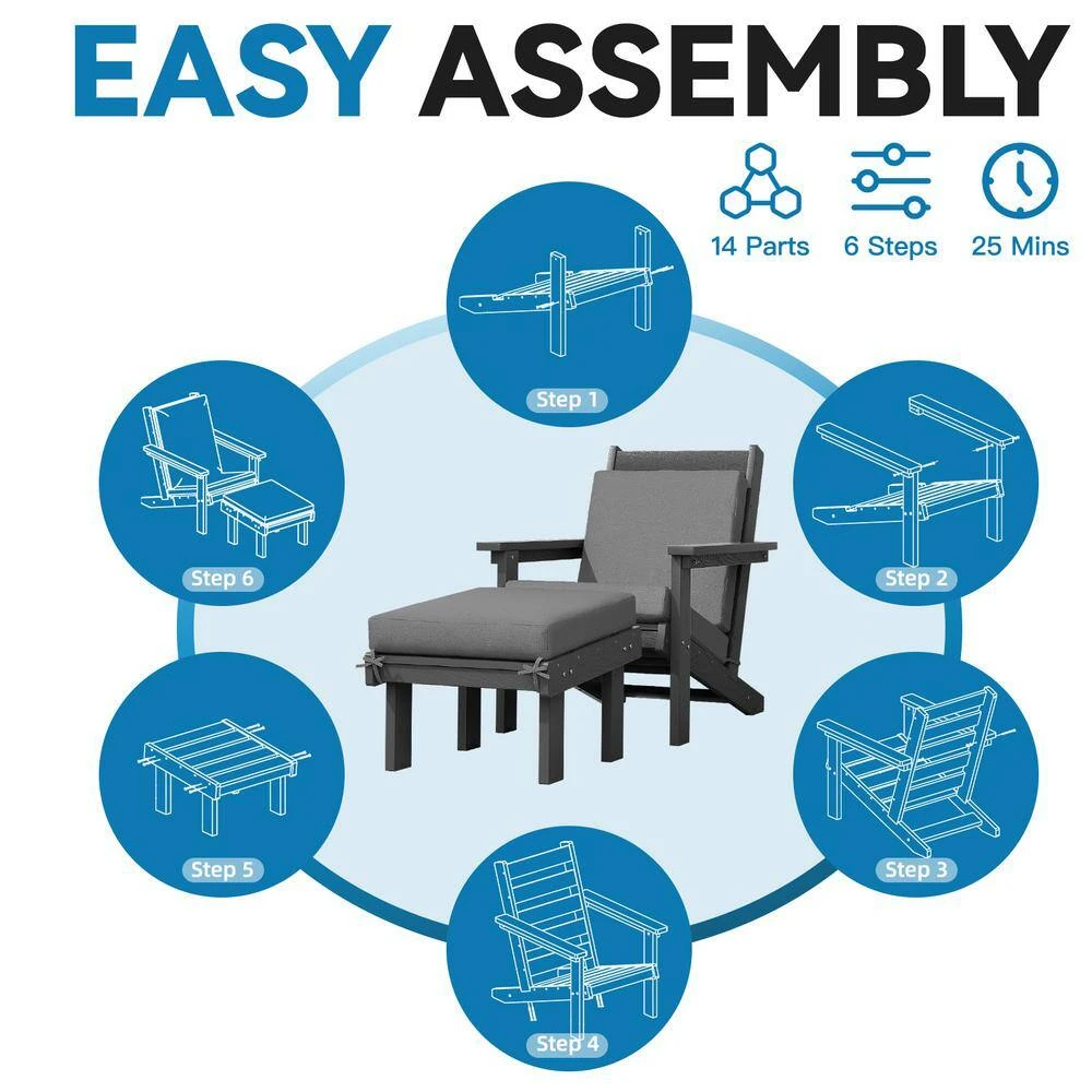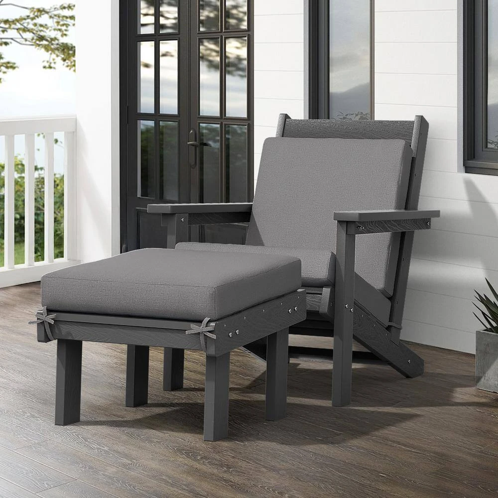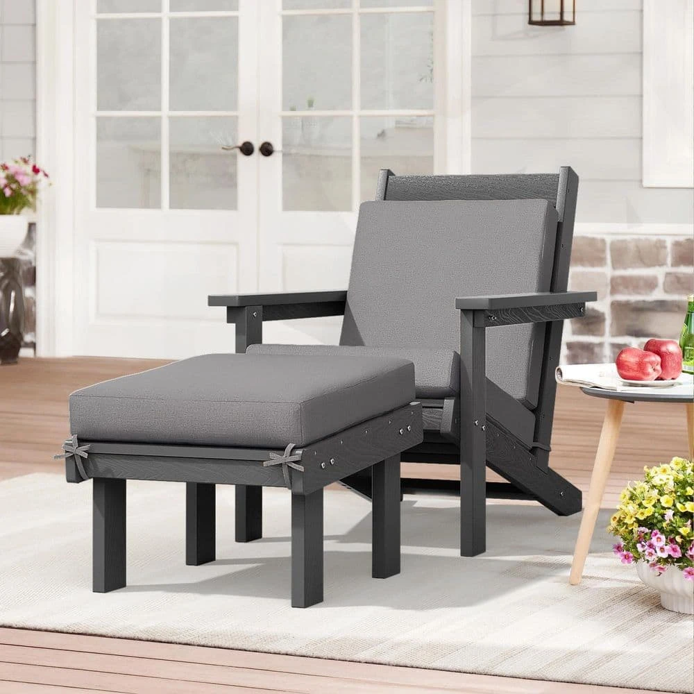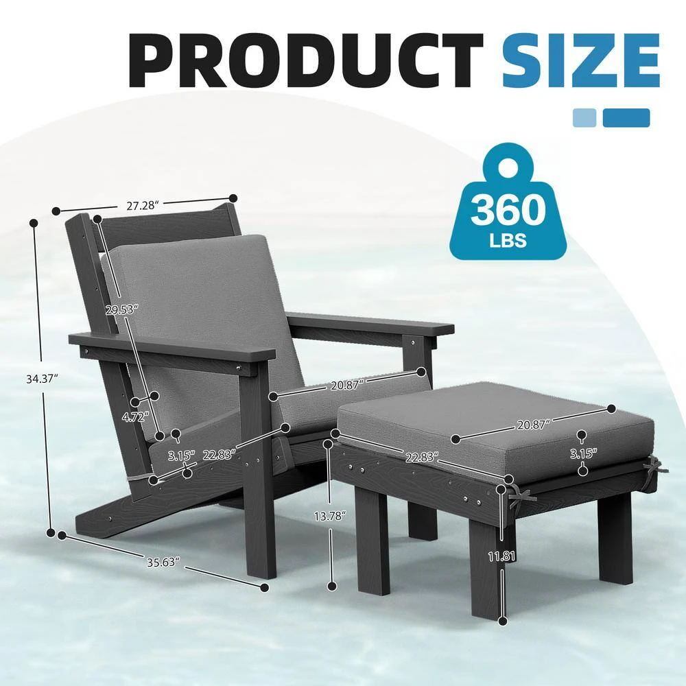 Transform your outdoor relaxation with this high-quality Adirondack Chair Set featuring a matching footrest and premium cushions. Built with durable HDPE material, it resists all weather conditions and ensures long-lasting performance. Thickened cushions with firm tie straps deliver superior comfort, while the ergonomic design provides excellent back and body support. Whether for your patio, deck, or garden, this versatile chair set is perfect for any occasion, offering a weight capacity of up to 360 lbs. Sit back, relax, and enjoy comfort like never before.