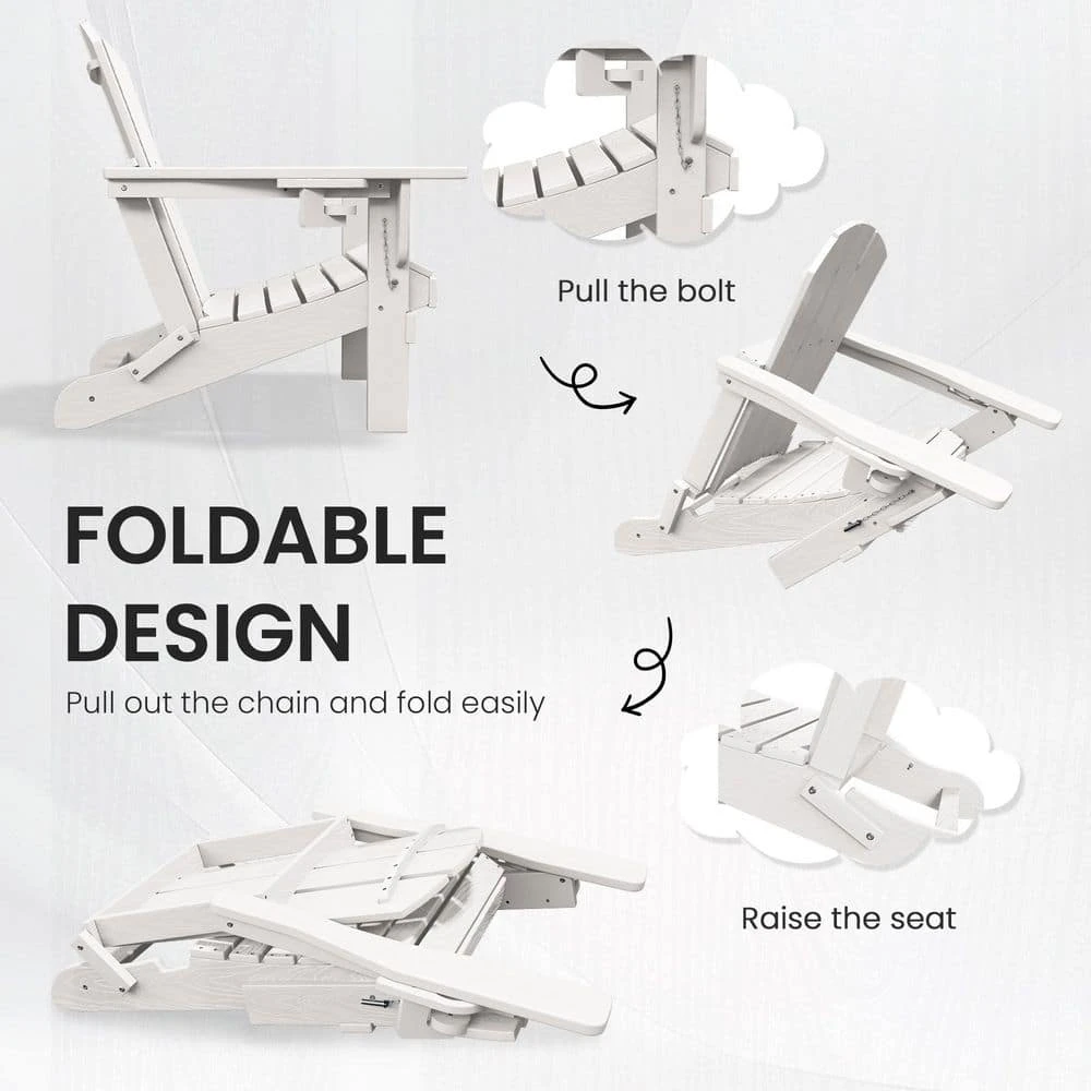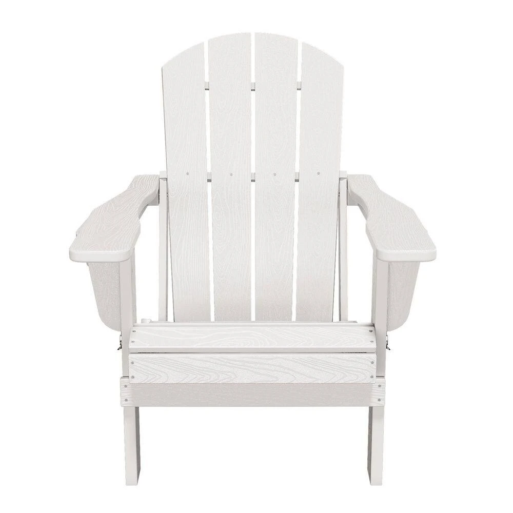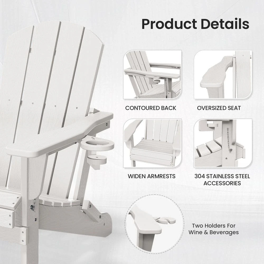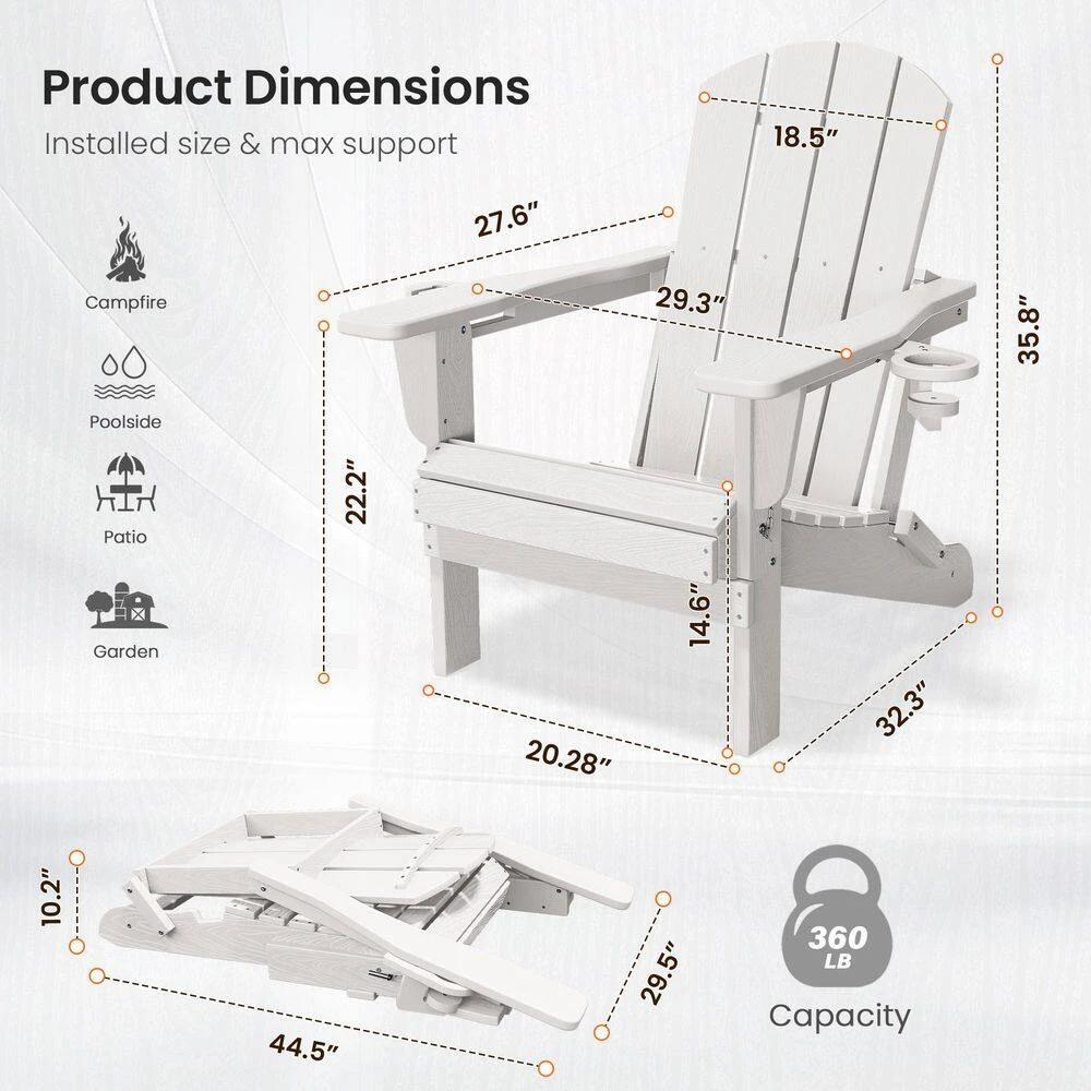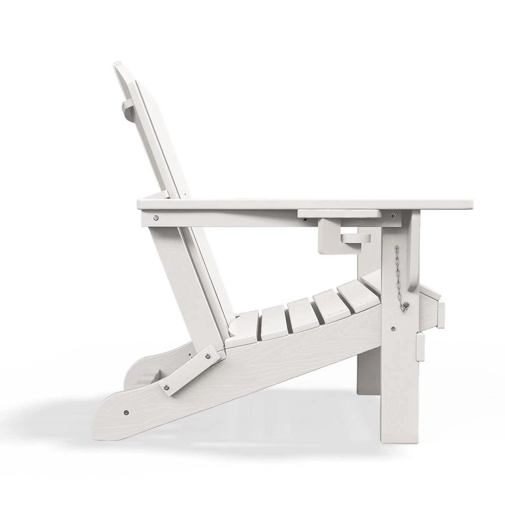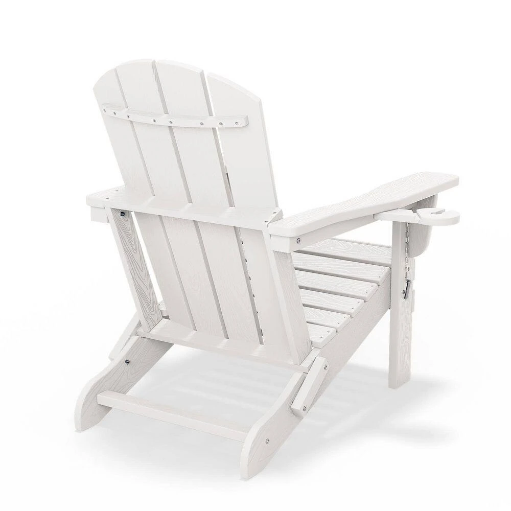 Classic White Folding Plastic Adirondack Chairs With 2-Cup Holders-Weather Resistant Patio Outdoor Chair (Set Of 1)