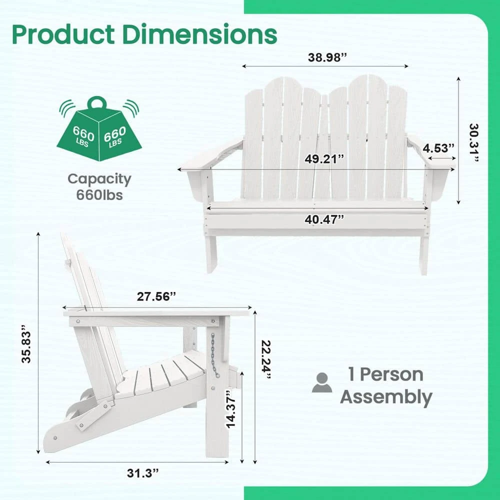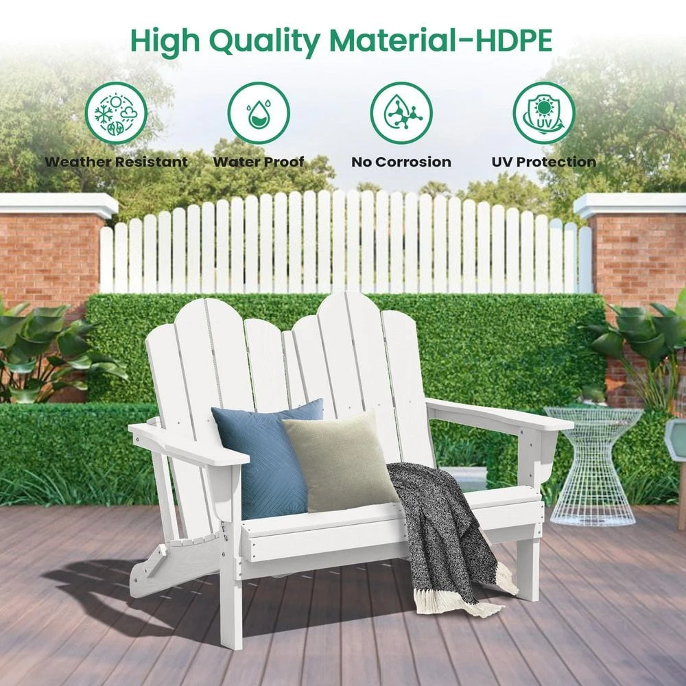 Transform your outdoor space with this comfortable and versatile loveseat. Designed for 2, this chair is crafted from durable HDPE material, making it perfect for outdoor relaxation while withstanding the elements. Its modern, elegant design enhances any patio, garden, or balcony, offering a cozy spot to unwind. Featuring a convenient foldable design, this loveseat is easy to store when not in use, saving space without sacrificing style. Available in 5-sleek finishes-Black, White, Gray, Navy, and Brown-this chair complements any decor style effortlessly. Whether you’re looking for a cozy retreat for reading or enjoying the fresh air, this foldable loveseat is your ultimate companion for relaxation and outdoor luxury.