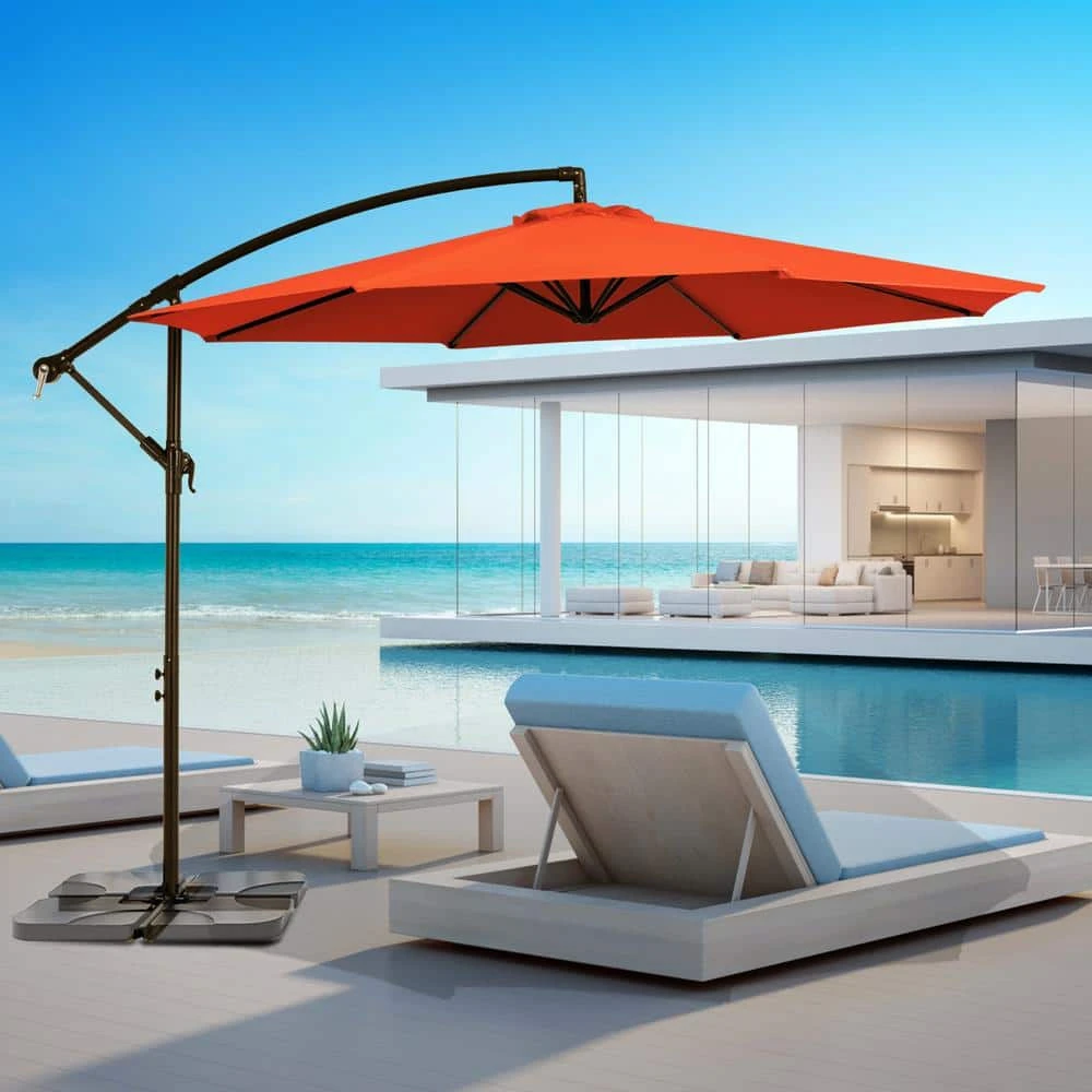 Curvy 10 Ft. Steel Large Cantilever Patio Umbrella With Cross Base In Orange