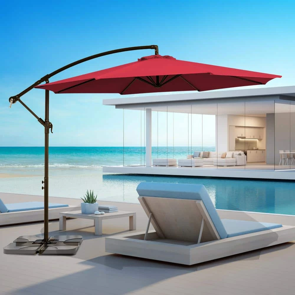 - 10 ft. cantilever umbrella shade your 54 in. to 66 in. round, square or rectangle table with 4 to 6 chairs, perfect for outdoor parties, business events, weddings and more