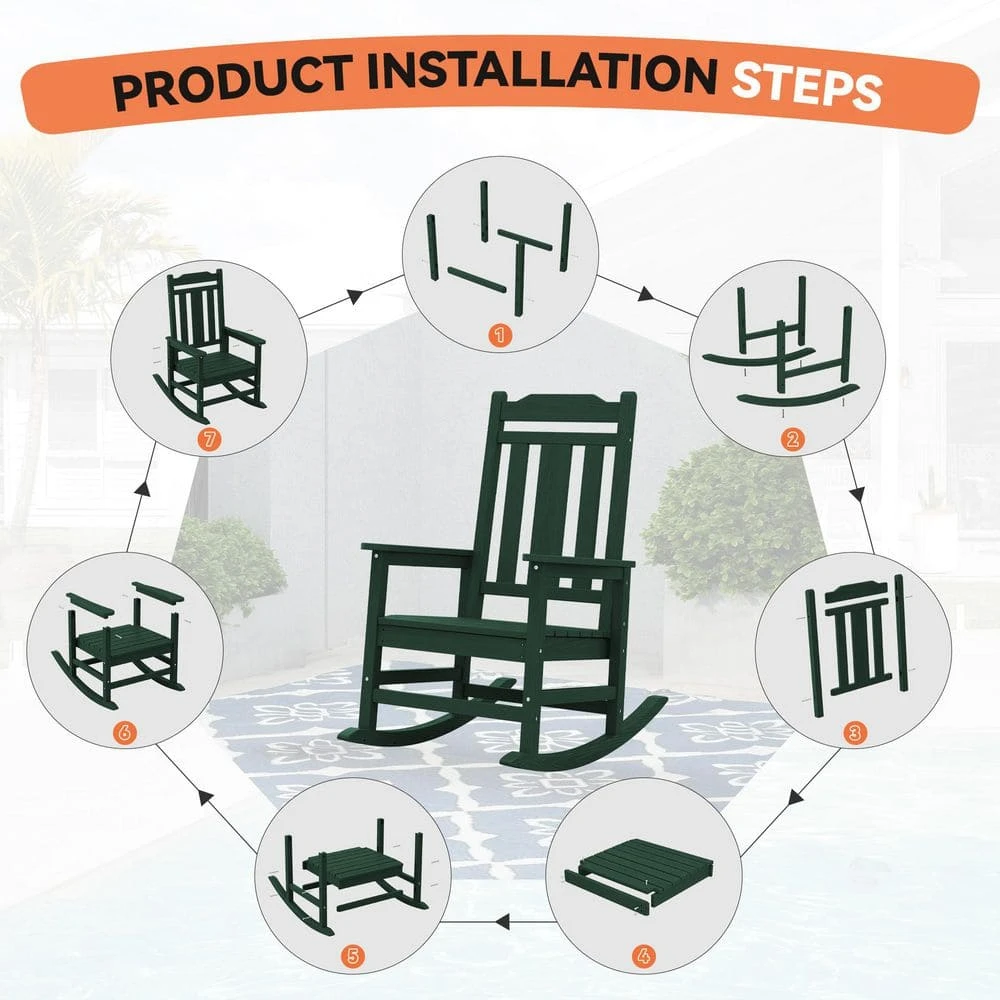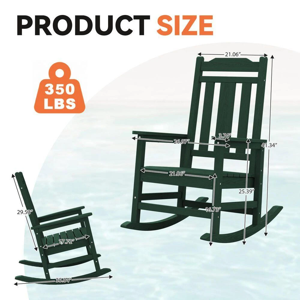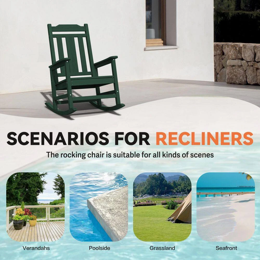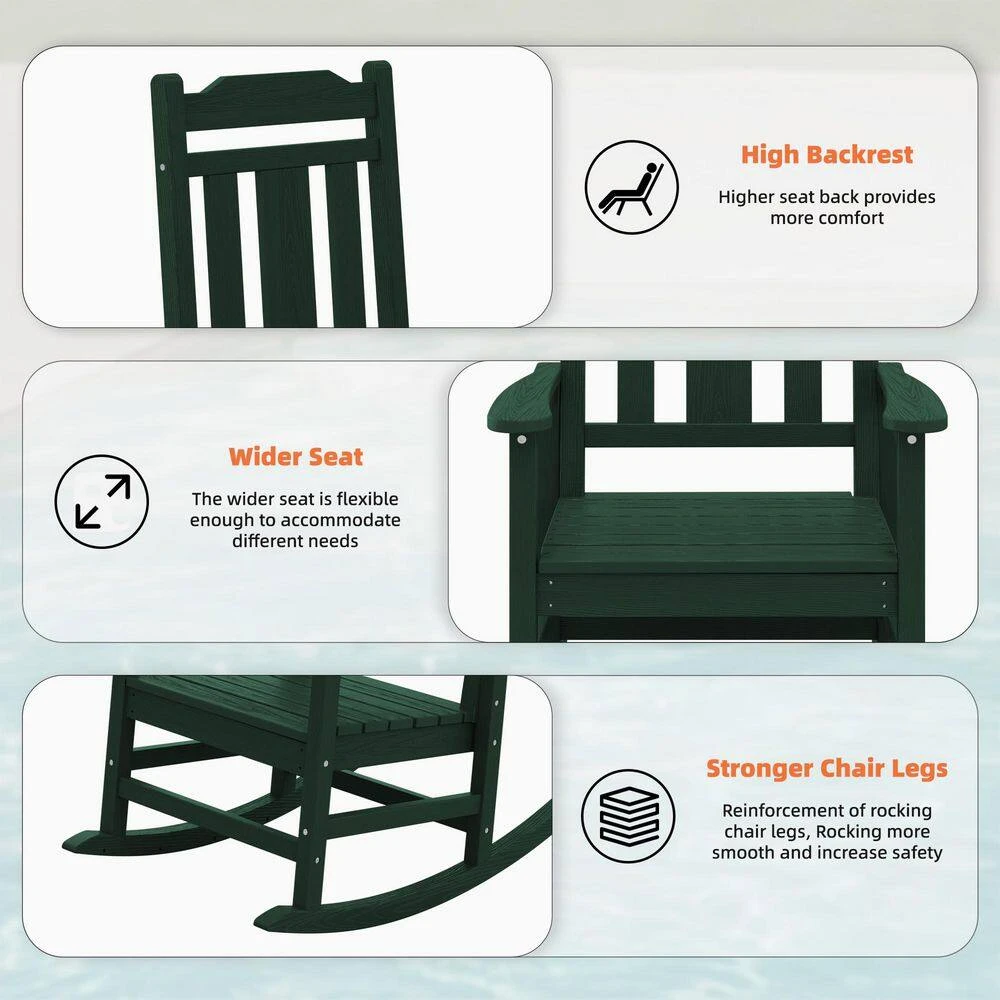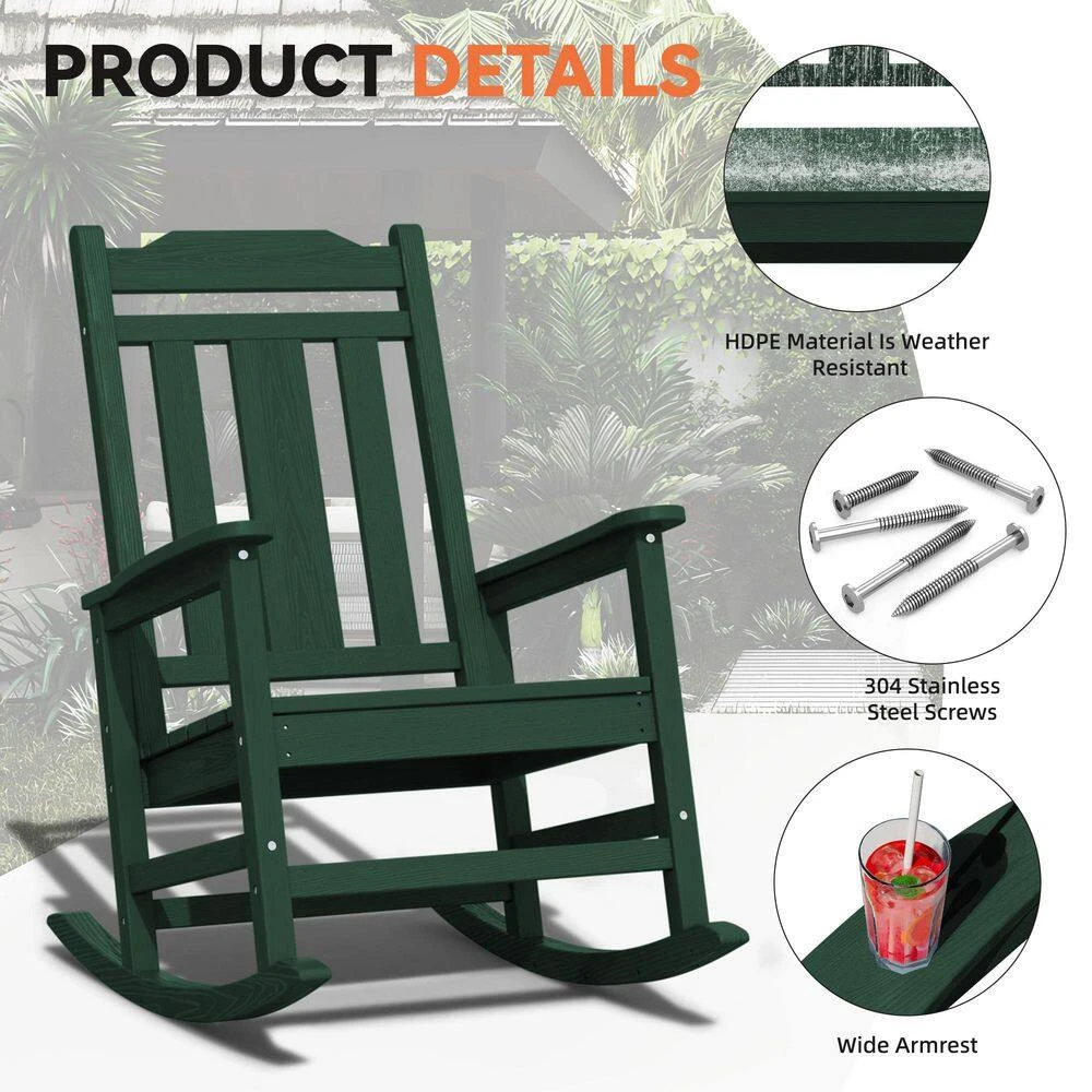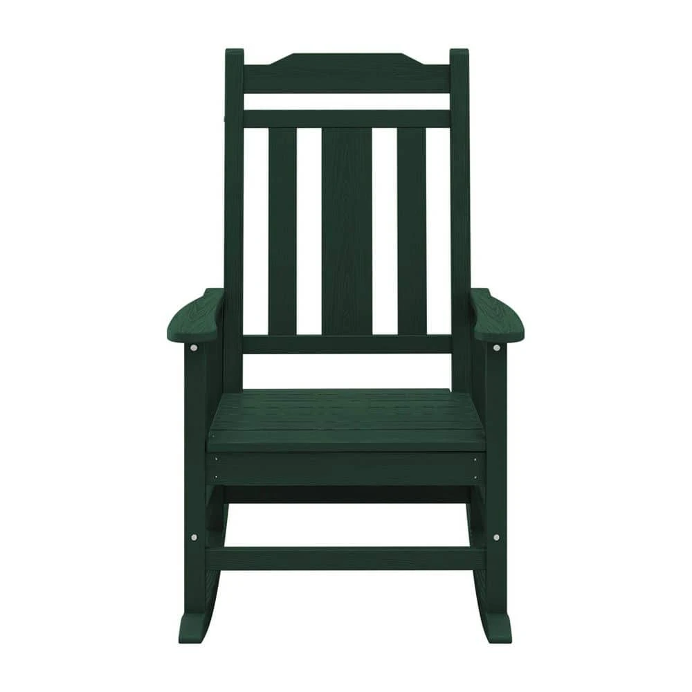 Dark Green HDPE Plastic Adirondack Chair Outdoor Rocking Chair For Patio And Garden (1-Pack)