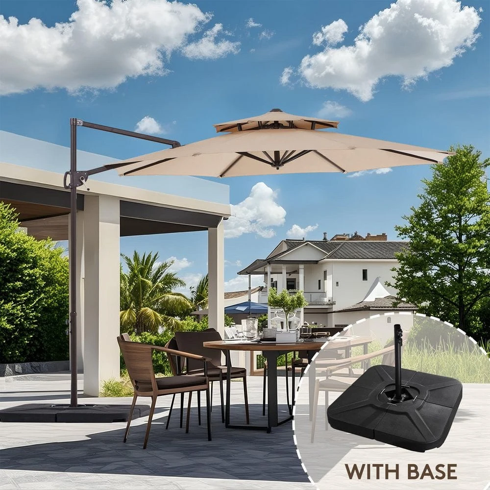 Transform your patio, deck, or poolside into a premium outdoor retreat with this complete All-in-One Cantilever Umbrella. Engineered for ultimate convenience and total control, this umbrella provides a massive shade footprint. Enjoy meals, conversations, and relaxation outdoors, comfortably shielded from the sun from dawn until dusk. This kit includes everything you need-the umbrella, the weighted base, and a protective cover- to upgrade your outdoor living space.
