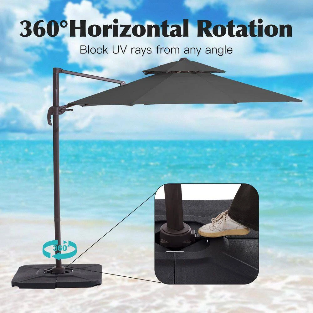 Transform your patio, deck, or poolside into a premium outdoor retreat with this complete All-in-One Cantilever Umbrella. Engineered for ultimate convenience and total control, this umbrella provides a massive shade footprint. Enjoy meals, conversations, and relaxation outdoors, comfortably shielded from the sun from dawn until dusk. This kit includes everything you need-the umbrella, the weighted base, and a protective cover- to upgrade your outdoor living space.