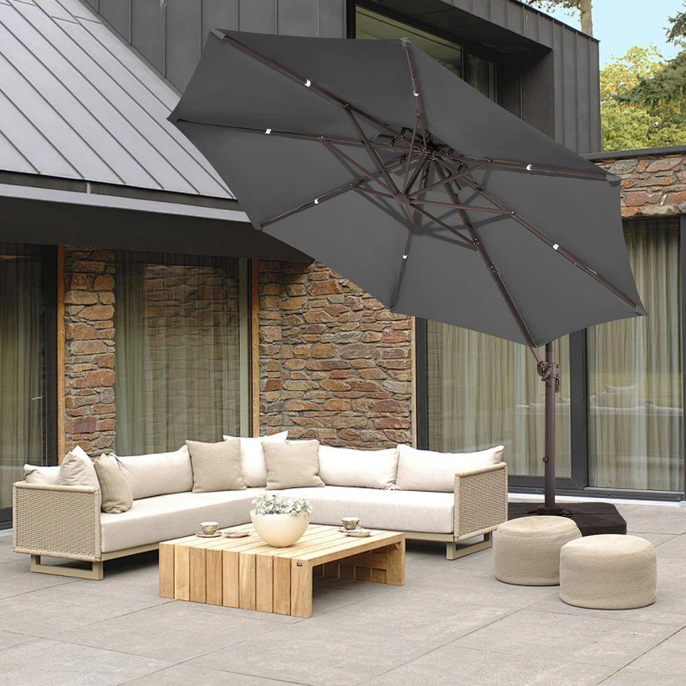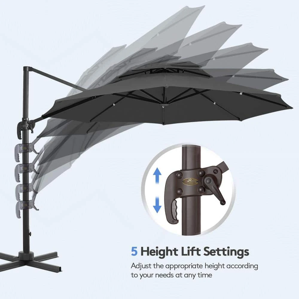 Double Top 11 Ft.Outdoor Cantilever Umbrella With Base And Cover,Heavy-Duty 360° Rotation Patio Umbrella In Gray