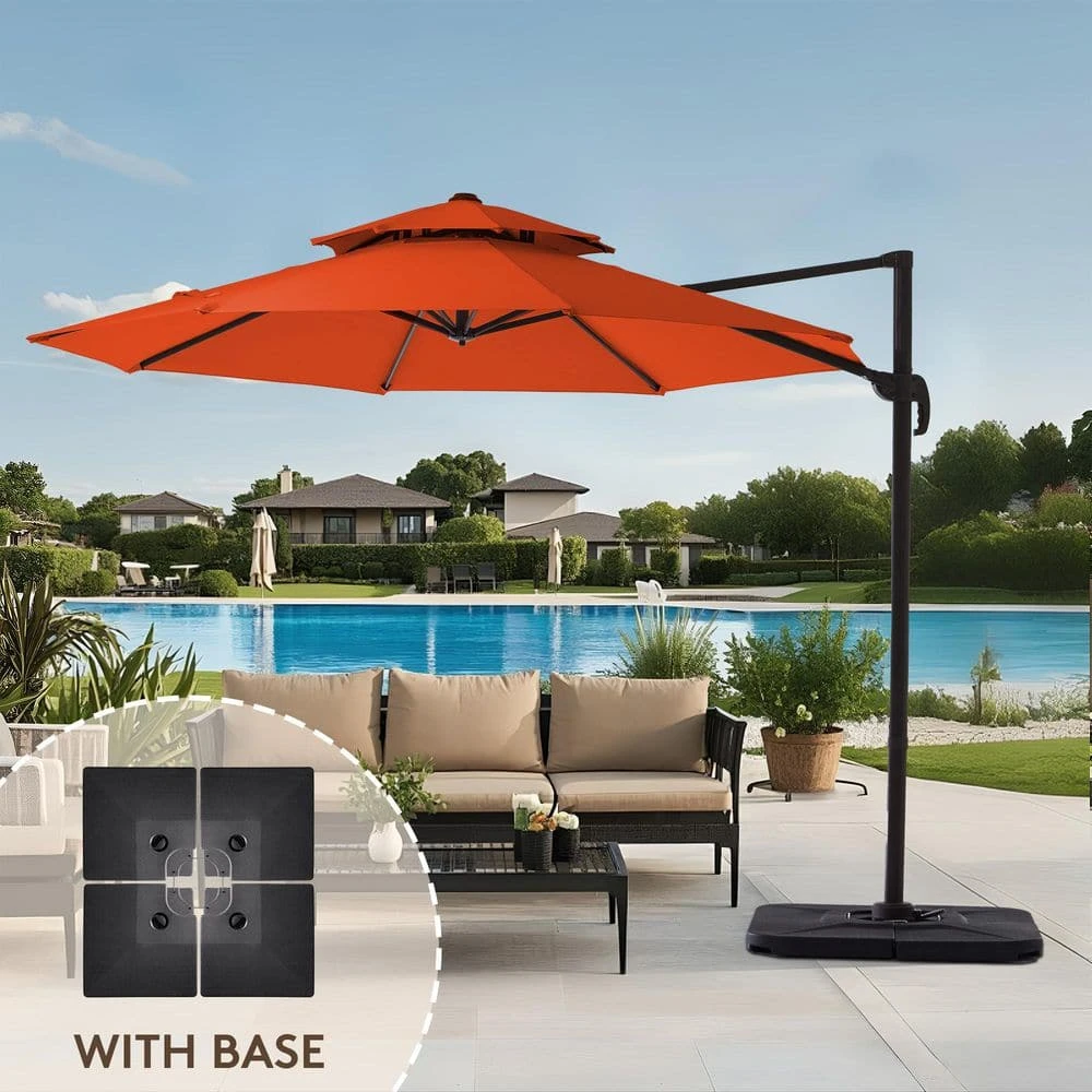 - Weighted base included – Our cantilever umbrella come with a weighted base for stability. You do not need to purchase separately