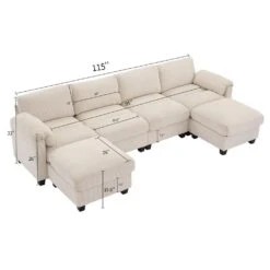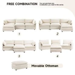 112 In. W 4-Piece Modern Straight Arm Corduroy Fabric L-Shaped Sectional Sofa With Ottoman In Beige