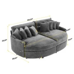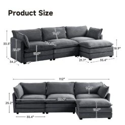 112 In. W 4-Piece Modern Straight Arm Corduroy Fabric L-Shaped Sectional Sofa With Ottoman In Gray
