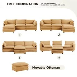 112 In. W 4-Piece Modern Straight Arm Corduroy Fabric L-Shaped Sectional Sofa With Ottoman In Yellow