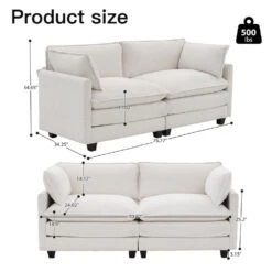Modern 48 In. Golden Base Velvet Tufted 2-Seats Beige Loveseat Sofa For Living Room Furniture Sets