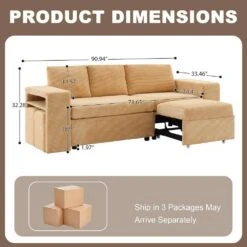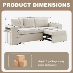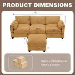 89 In. Square Arm Fabric L Shape Sectional Sofa With Chaise Lounge And Pillow In Carbon Ash