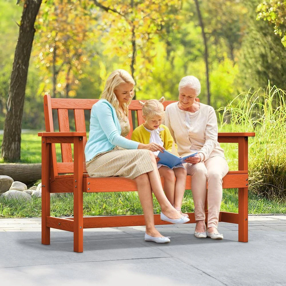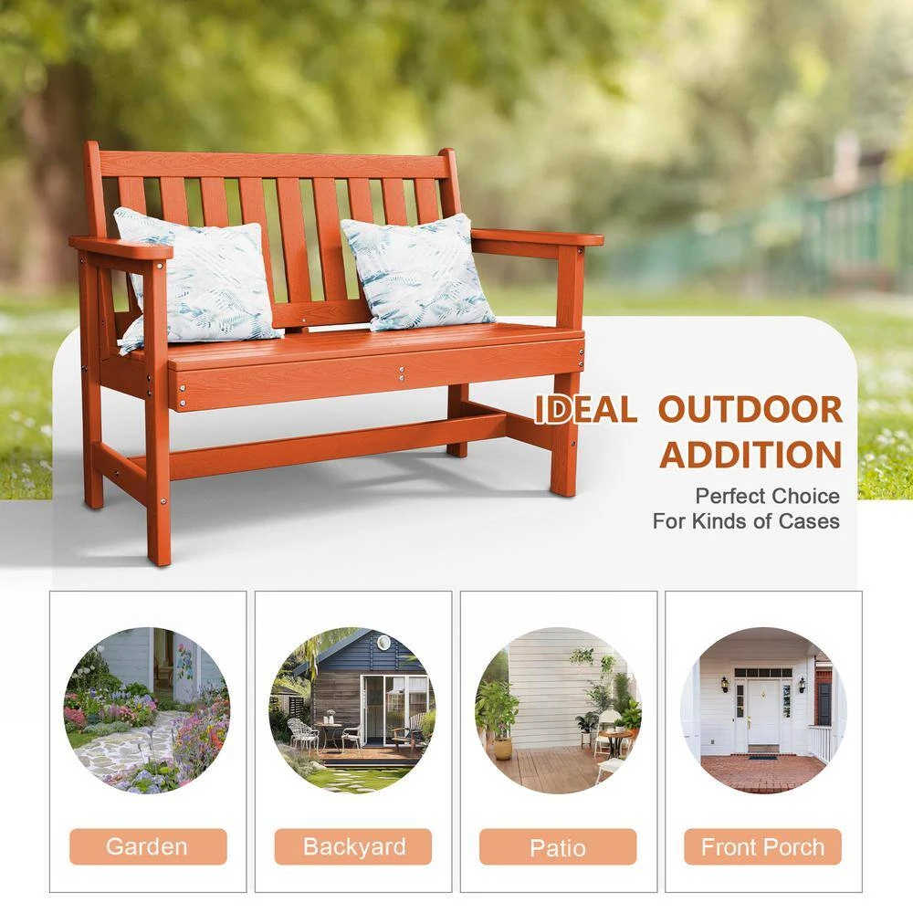 Garden Bench All-Weather HDPE 2-Person Plastic Outdoor Bench In Dark Orange
