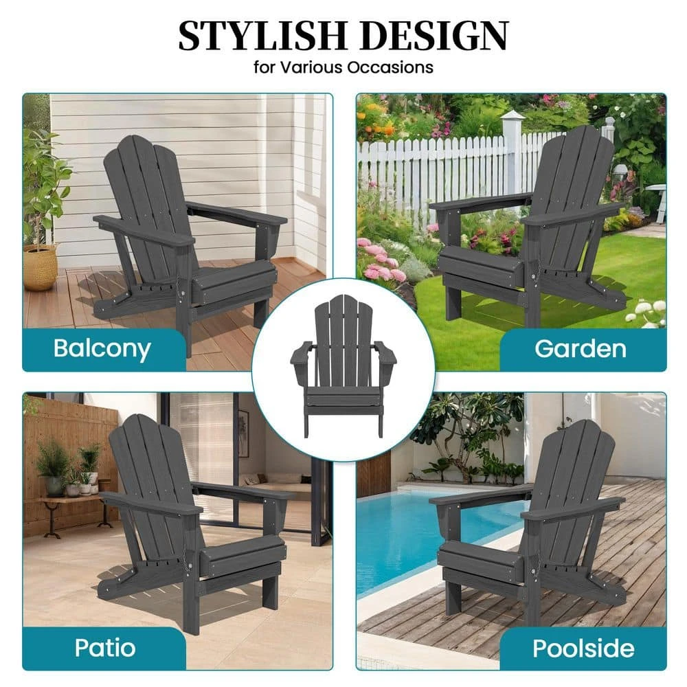 Gray Folding HDPE Outdoor Patio Plastic Adirondack Chair With Ergonomic Design (1-Pack)
