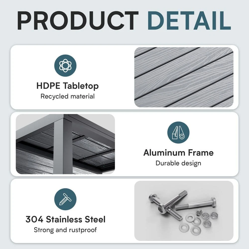 - Rust-proof and durable: the sleek, rust-proof aluminum frame ensures effortless mobility and stability, while the HDPE top provides durability and resilience it withstands cold air and daily use, ensuring lasting value for you year after year